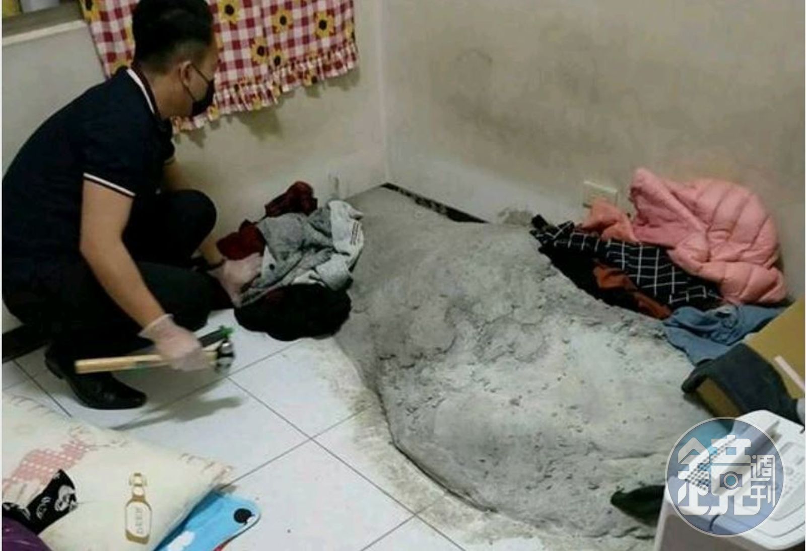 警方在葉女房間發現水泥塜。(翻攝畫面)發布時間:2018.03.17 14:55 臺北時間