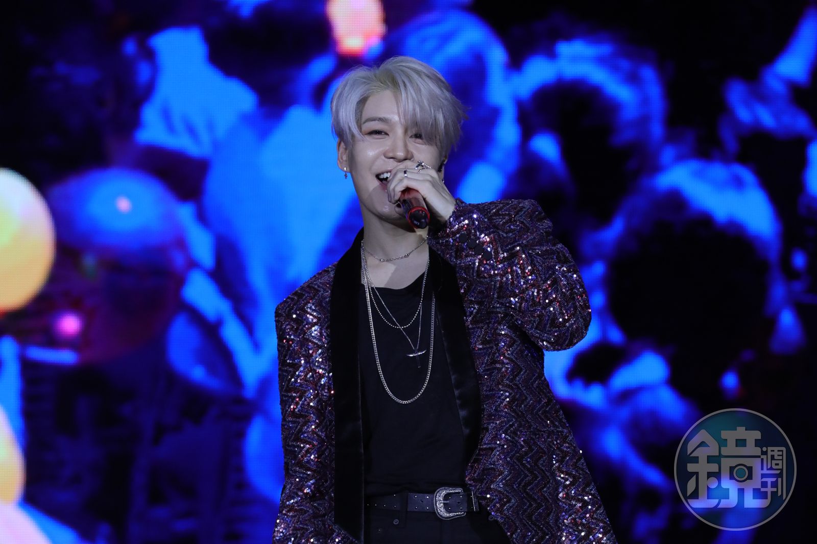 姜成勳不愧以圈飯出名,貼心問候到每一個區域的粉絲,「2樓的粉絲看得清楚嗎?我們待會見喔」甜呼呼的問候讓粉絲幸福的笑聲一直沒停過。見面會未安排主持人,由姜成勳與翻譯直接進行,「向大家報告近況,我呢,很安全地搭飛機到來,也像大家看到的一樣,『依然這樣地帥氣』。」