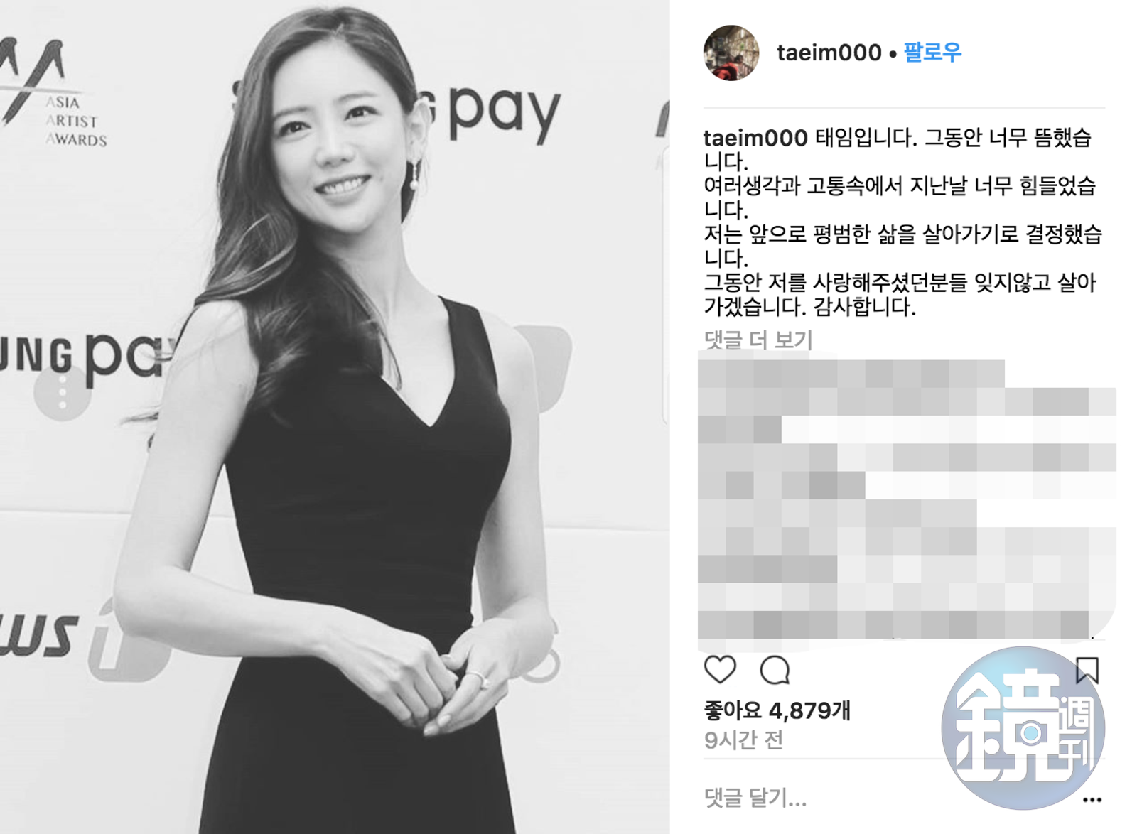 韓女星李泰林在IG宣布引退。(翻攝自李泰林IG)發布時間:2018.03.19 15:08 臺北時間