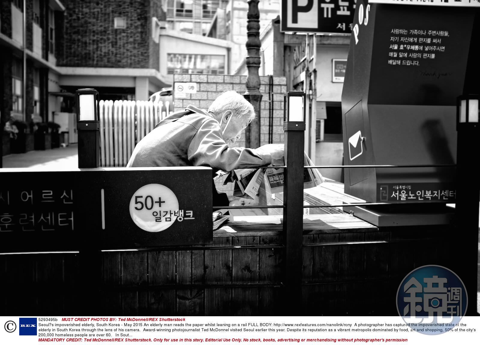 金融時報指出南韓65歲以上的人口比例不斷攀升,到了2060年時,將占所有人口的4成以上,也就是10個南韓人中就有4人年近古稀。照理說,這個年齡的國民應該從職場退下,開始領年金或退休金,安享天年,但在南韓嚴重落後的福利政策下,將近半數老人都為貧困所苦,南韓總統安在寅雖宣示將在2021年前提高5成的老人年金,但即使是「加薪」後的年金,也只有區區新台幣8千多元。許多退休卻無法真正退休的南韓老人家,被迫重回職場,靠低薪的打工來維持生活基本開銷。