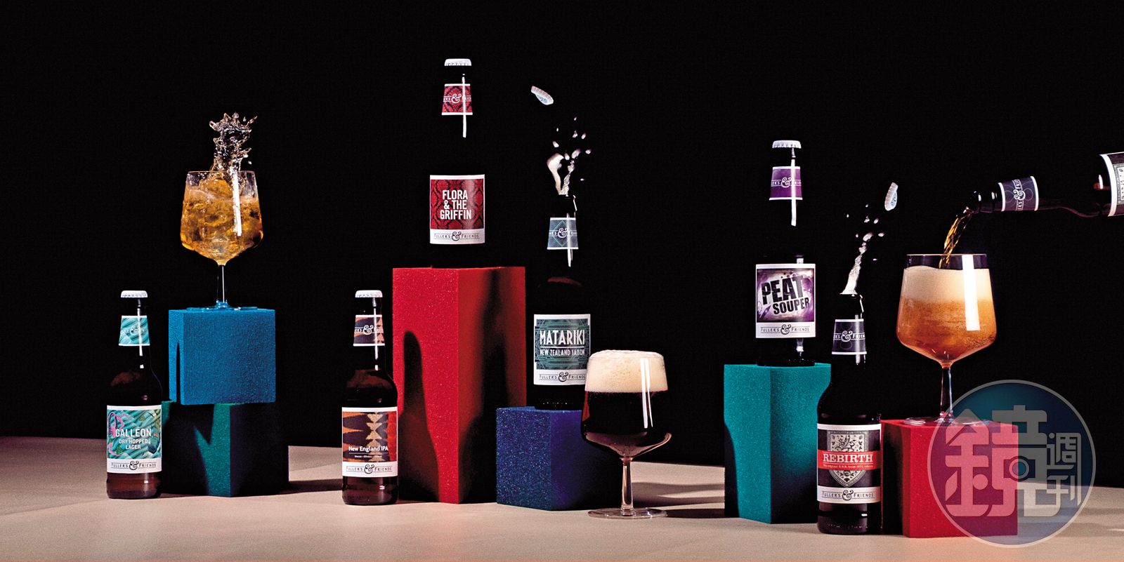 富樂「Fuller’s & Friends聯名好友系列計畫」 富樂啤酒與6個英國新興酒廠合作(分別是Fourpure、Marble、Moor、Thornbridge、Cloudwater與Hardknott),邀請6個酒廠的釀酒師至富樂酒廠,使用富樂的設備與自培酵母進行釀造,從酒譜研發、原料挑選到實際釀造,緊密攜手合作,聯名發表6款全新系列酒款,(左至右) Galleon冷泡酒花拉格、Matariki紐西蘭酒花季節啤酒、Rebirth ESB冠軍啤酒再生、Flora & The Griffin裸麥紅愛爾、New England IPA新英式IPA、Peat Souper煙燻波特啤酒。