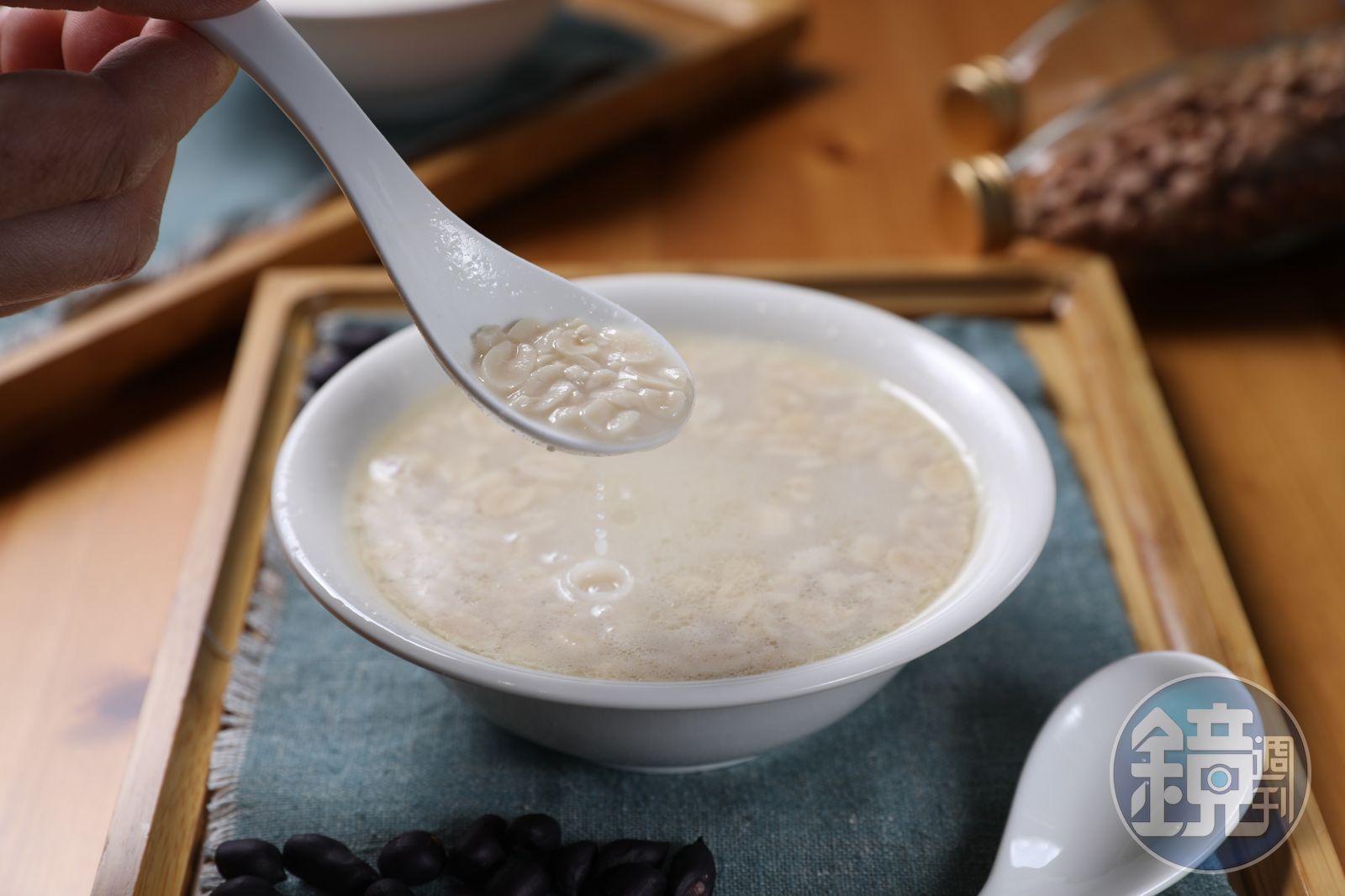 從一般農產加工出發,去年,「美好花生」有了新據點,農田間一棟簡單灰色建築,裡頭賣自家產品以及附近農家的寄賣作物,唯一可以在店內直接享用的是「花生湯」。鍾順龍笑說,假日限定、帶有奶香味的「花生湯」,製作起因是自己愛吃,所以花費心思研究,用6小時慢慢煮出花生天然的甜香滋味,不少遊客專為了那一碗花生湯而來。