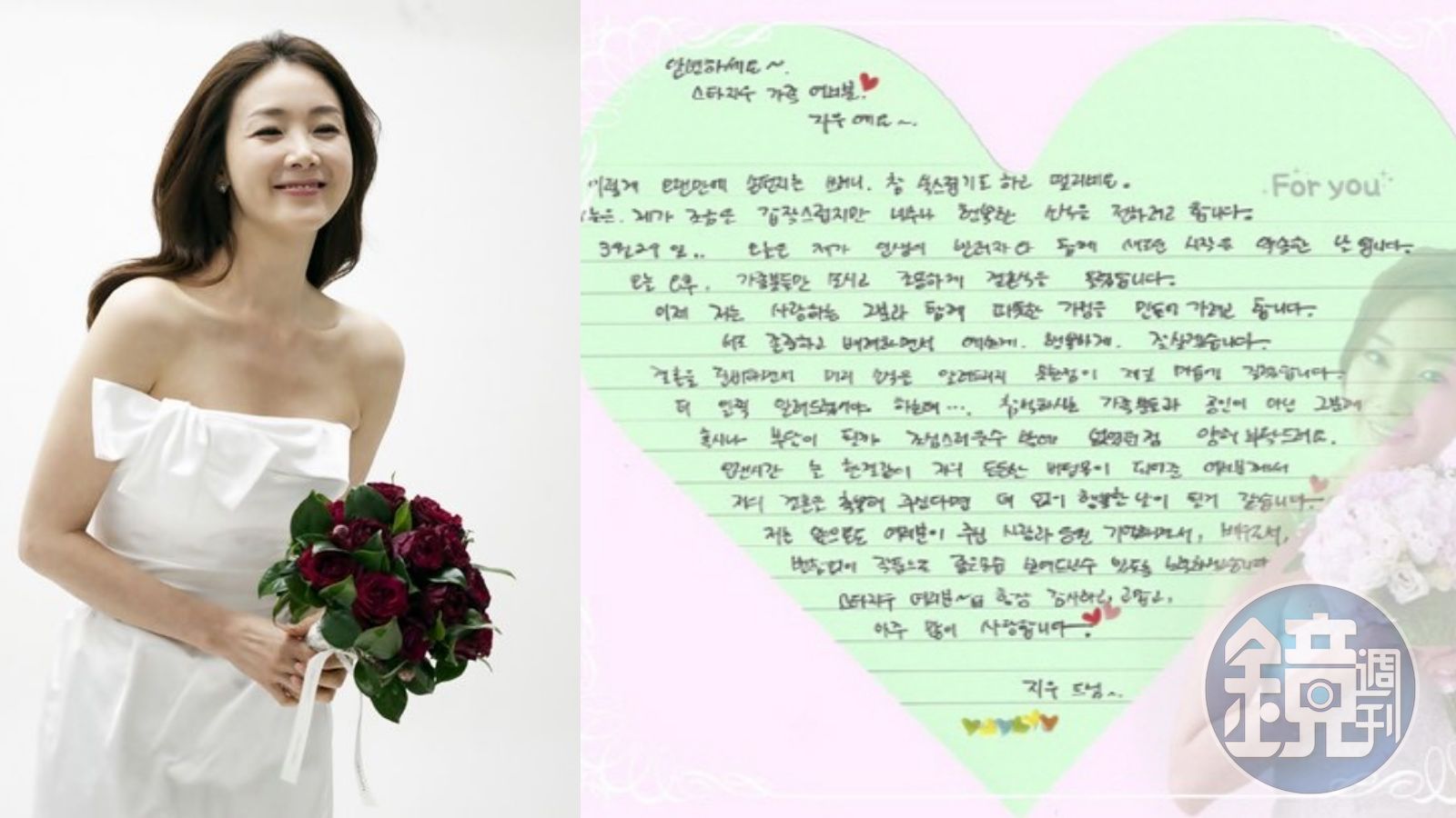 崔智友親筆信透露:「雖然很突然,但我還是要告訴大家這個幸福的消息,今天下午我會和家人一起低調舉行婚禮,與他共建一個溫暖的家庭,我們會互相尊重、互相關心,幸福的生活下去。」