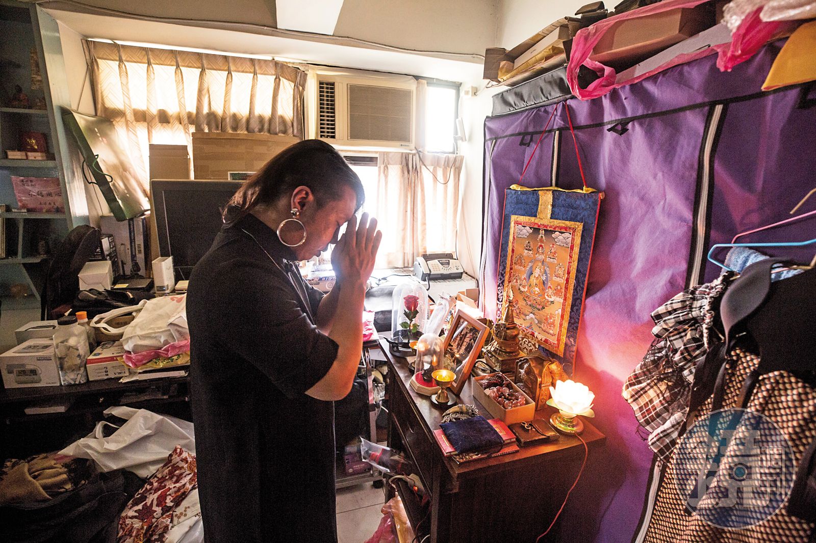 一週後,第3次碰面前,他回傳訊息給早在樓下等著的我,說:「你們慢慢來,我也還在打扮。」這回他畫了口紅,戴了耳環,穿上守喪服般的黑長衫,隆隆重重地見客。