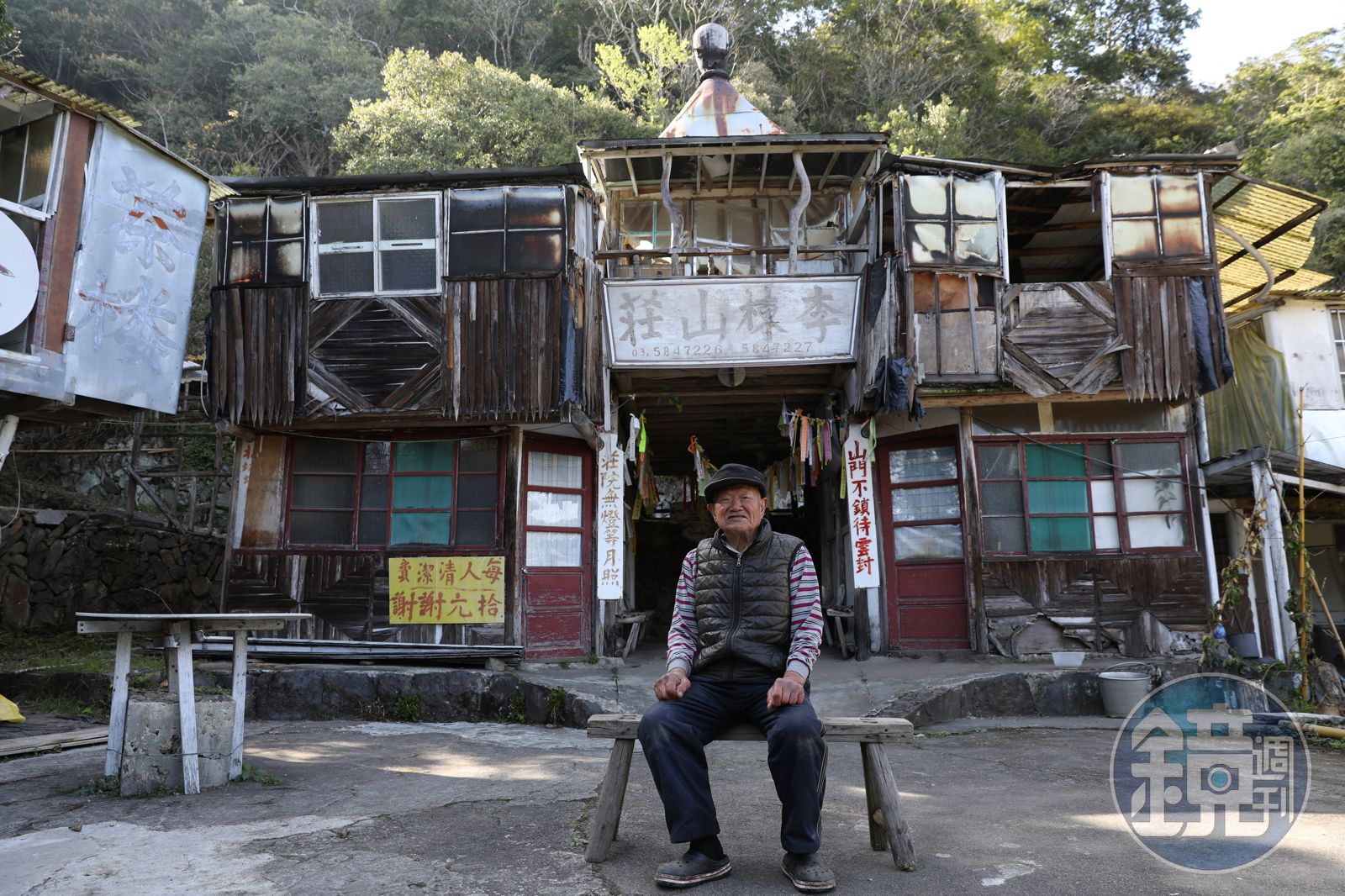初見「李棟山莊」時周圍寂靜,只見門口木板用楷體寫「山門不鎖待雲封、莊院無燈等月照」。有風偶爾颳過樹梢的聲音,連聲鳥啼都幾乎沒有。我跟攝影輕手輕腳向屋子裡走。「喔、喔、喔!」突然間,屋子後方出現一陣呢喃,像呻吟,我聽著聲音心裡有點慌。沿著屋後的小坡道向上走,原來一名老頭兒正種菜呢,口中喔喔叫著,像正在為自己打氣,對於來人絲毫不見。