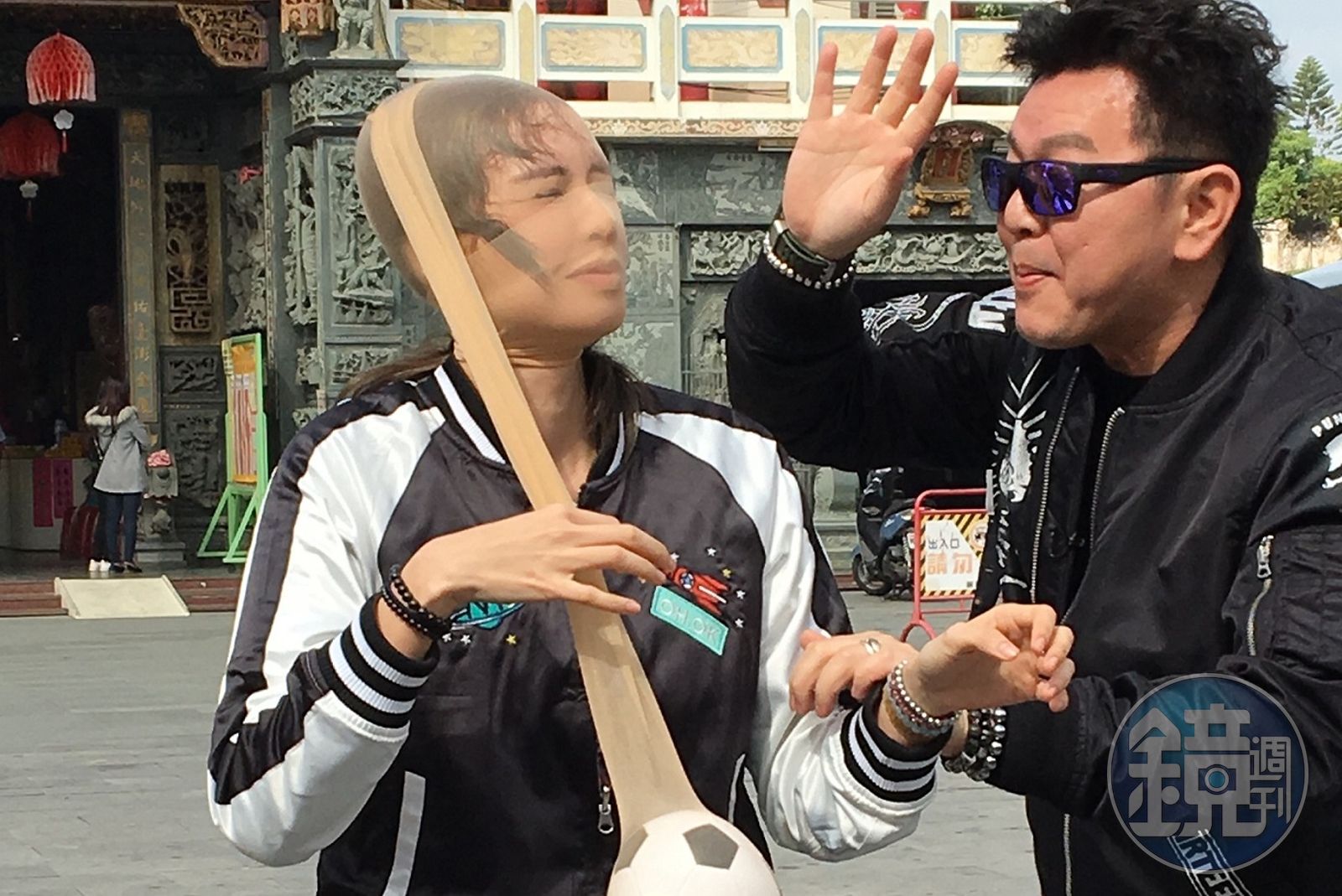 這次節目遠征到美食之都台南錄影,為了能吃到美食,大家在遊戲中都超級拚命,輪到袁艾菲上場時,她想學前面比賽過的謝忻,把絲襪套在額頭上,用頭的力量把球擊倒,但她無法自己將絲襪套好,只好請庹宗康幫忙,庹宗康心想機會難得,就用力往袁艾菲頭上套,竟然瞬間把宅男女神變成了搶匪!倒是袁艾菲完全不以為意,還想繼續玩遊戲,是一旁的謝忻看不下去,趕緊出來幫她把絲襪拉到額頭上,笑說扮她來就好,袁艾菲還是當女神就好。