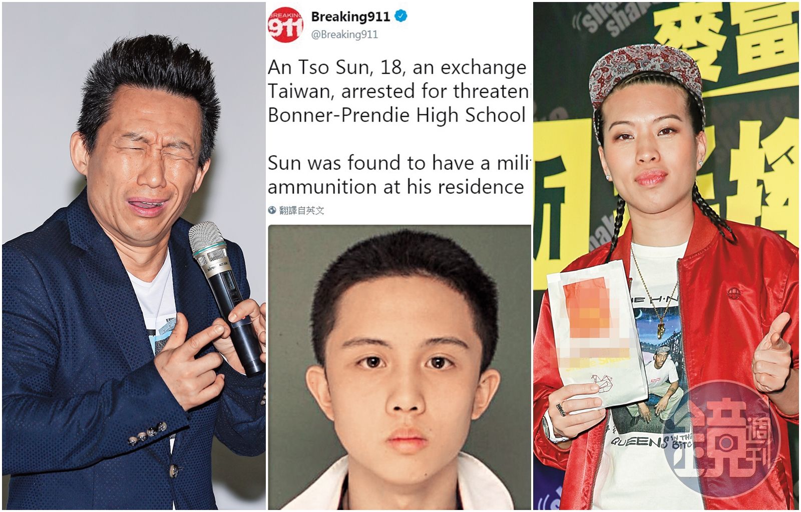 明明是慈善場子,郭子乾(左)右手的食指跟拇指不安分,比出槍型,加上表情微妙,算是極度可疑;孫安佐(中)是狄鶯跟孫鵬的兒子,他在美國放話要在校園開槍,最近被捕,鬧得國際新聞沸沸揚揚;葛仲珊(右)也是一手代言、一手擁槍,美國街頭氣息也讓她增添些許男孩氣概。發布時間:2018.04.08 20:00 臺北時間