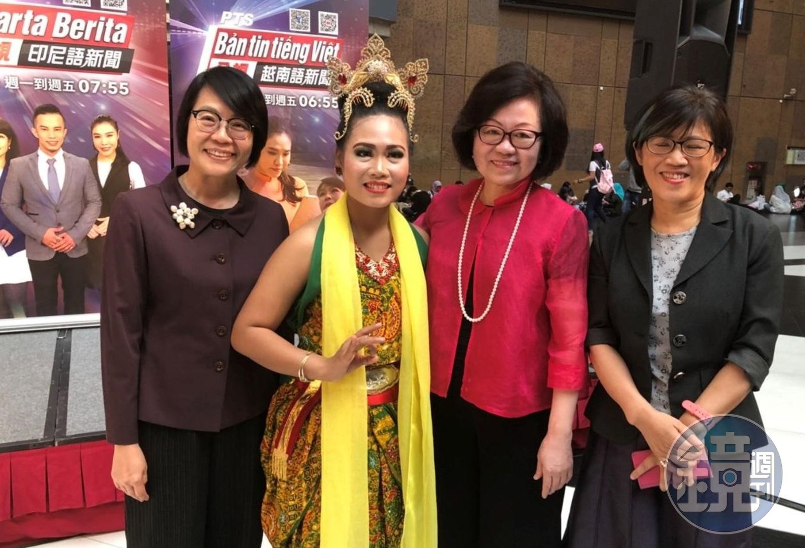 印尼語主播Warta Berita(中)將每天於頻道中播報新聞。右:公廣集團董事長。左:公廣集團董事邱家宜。(公視提供)更新時間|2023.09.12 20:26 臺北時間