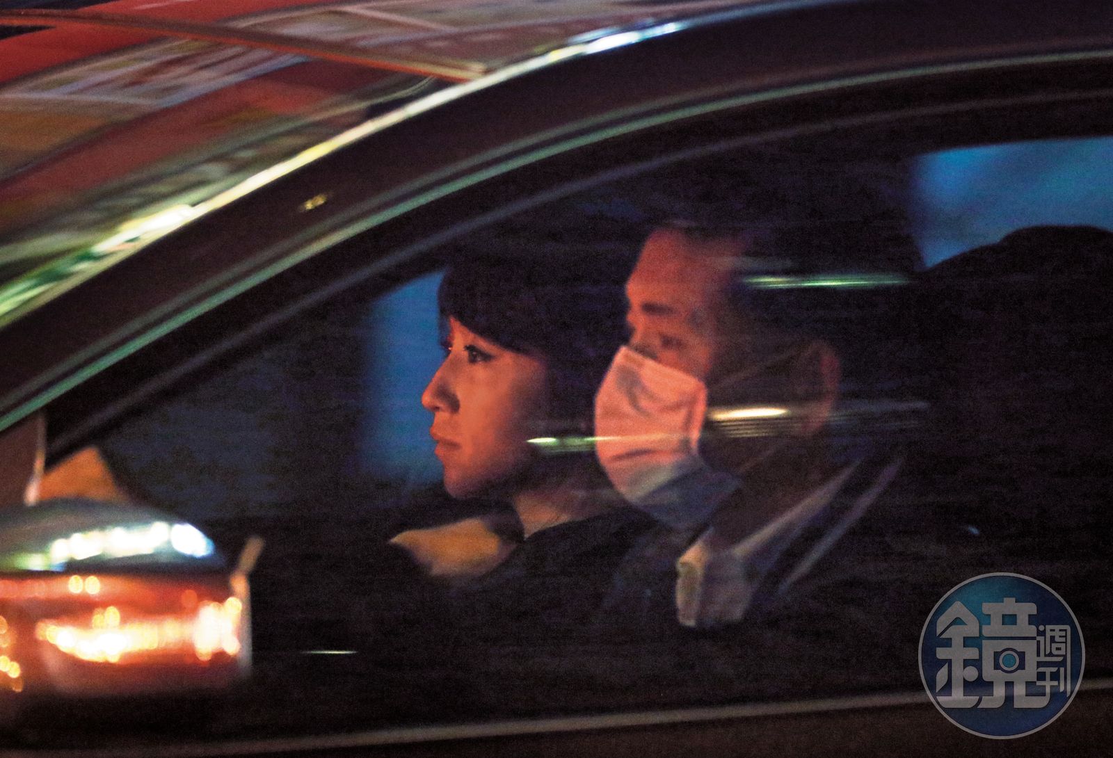 3月26日凌晨午夜時分,本刊目擊戴錫欽身穿藍色夾克手拿飲料,現身台北市一處影城,他戴著口罩獨自一人從樓梯步行下樓,接著走往附近巷內取車,但一坐好幾分鐘遲遲未離開,就在此時,一名頭戴帽子的女性,鬼鬼祟祟地打開副駕駛座上車,這時戴錫欽才緩緩發動開車。