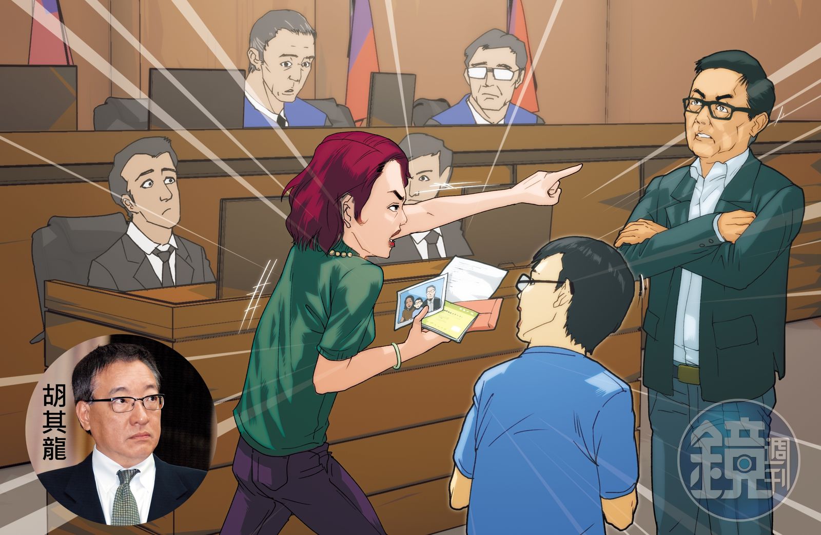 今年2月底、3月初,台北地方法院家事法庭原本預定有2件「確認親子關係」的官司宣判,2件官司的被告都是胡其龍,原告則分別是林姓、張姓母子。本刊調查,這個胡其龍大有來頭,他是台泥辜家的大女婿,這2件官司也讓他的2段外遇意外曝了光。