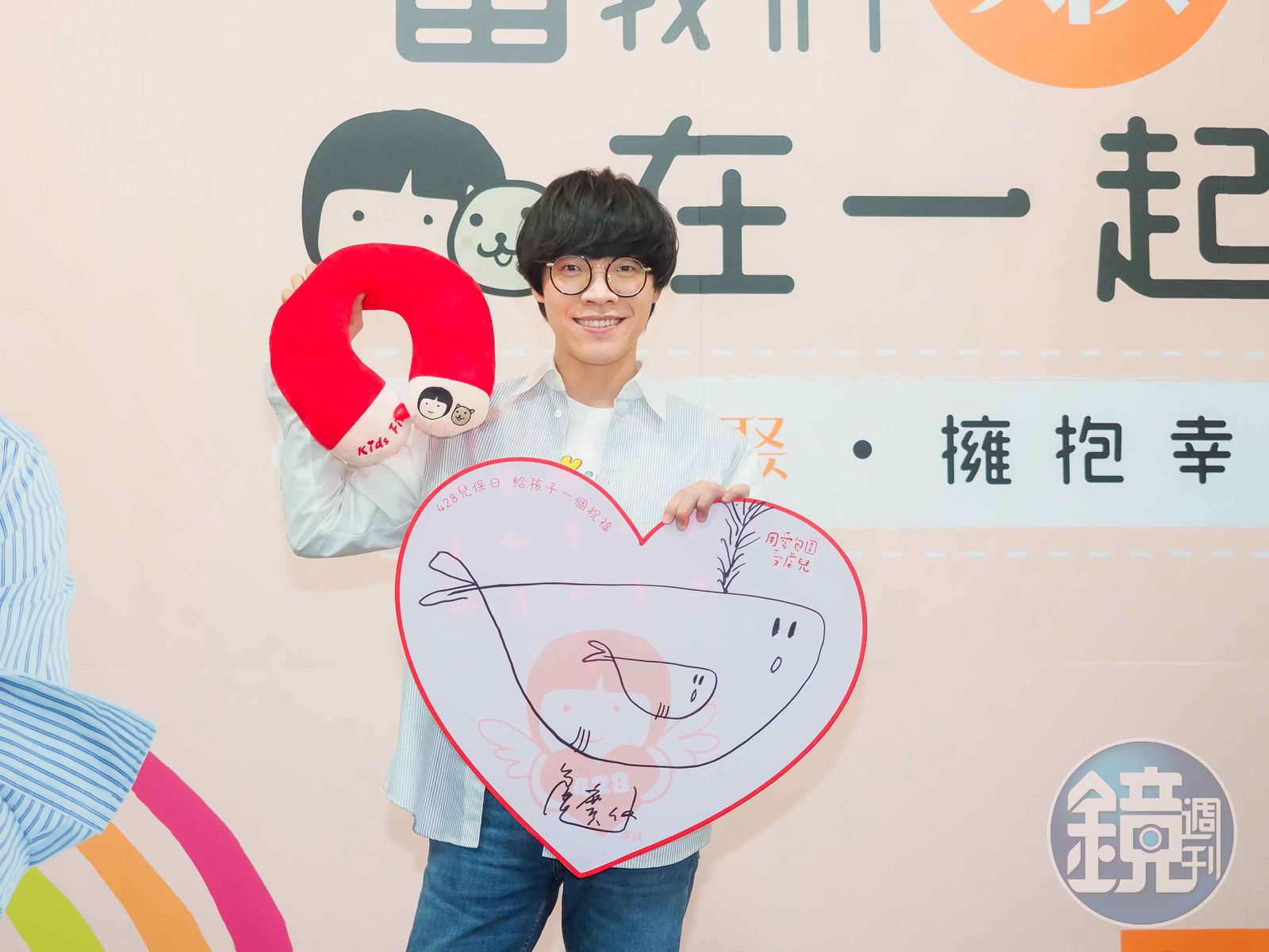 盧廣仲出席家扶基金會活動,推廣兒保頸枕義賣展現愛心。(家扶基金會提供)發布時間:2018.04.09 17:37 臺北時間