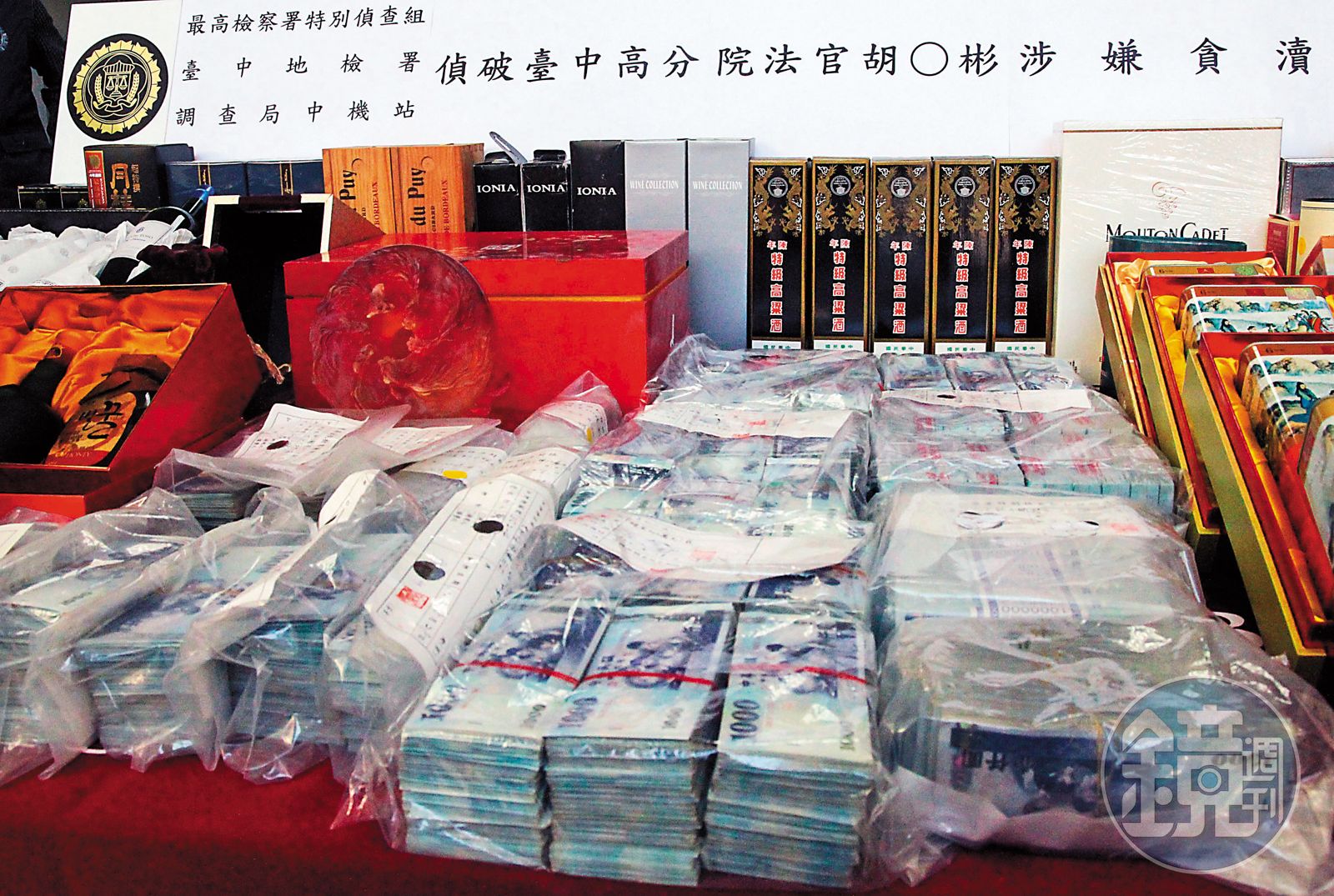 特偵組查辦胡景彬案時,從他與情婦住處及銀行保管箱,查扣到的2,600多萬元現金,並找到各類洋酒319瓶、高麗人參20盒,部分的酒瓶上還寫有名字,胡景彬當時供稱怕忘了是誰送的才寫名字。