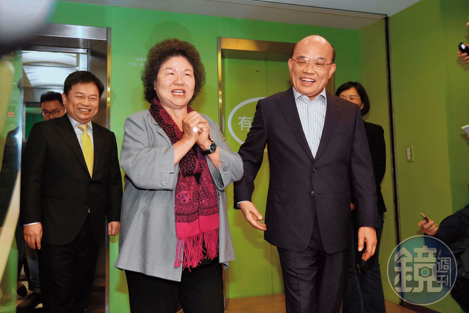 「勸進蘇貞昌,是陳菊主導選局的起手式,豈有落空的道理。」知情人士說,除了花媽,民進黨選對會召集人林錫耀去年底到農曆年間,即布局讓蘇有參選心理準備,並與蘇保持高度連繫,3天2頭就與蘇會面,林曾是蘇任台北縣長時的副手,更能稱職扮演小英及蘇的溝通橋梁,加上行政院長賴清德也從旁敲邊鼓,才能迅速搞定此事。