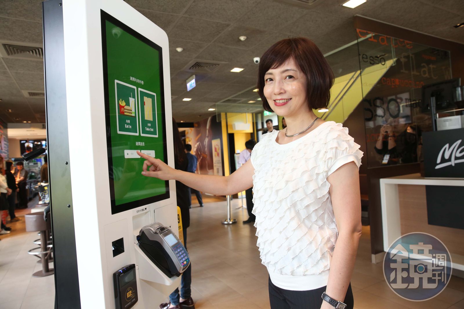 至於機器點餐將取代人力?寇碧茹破除謠言表示:「人力不減反增!」以第一家測試店台北舊宗餐廳為例,外場接待員職務由4位增員至11位,McCafé 旗艦專櫃店星級咖啡師亦增至5位,未來的麥當勞會繼續專業分工,讓服務更周到。