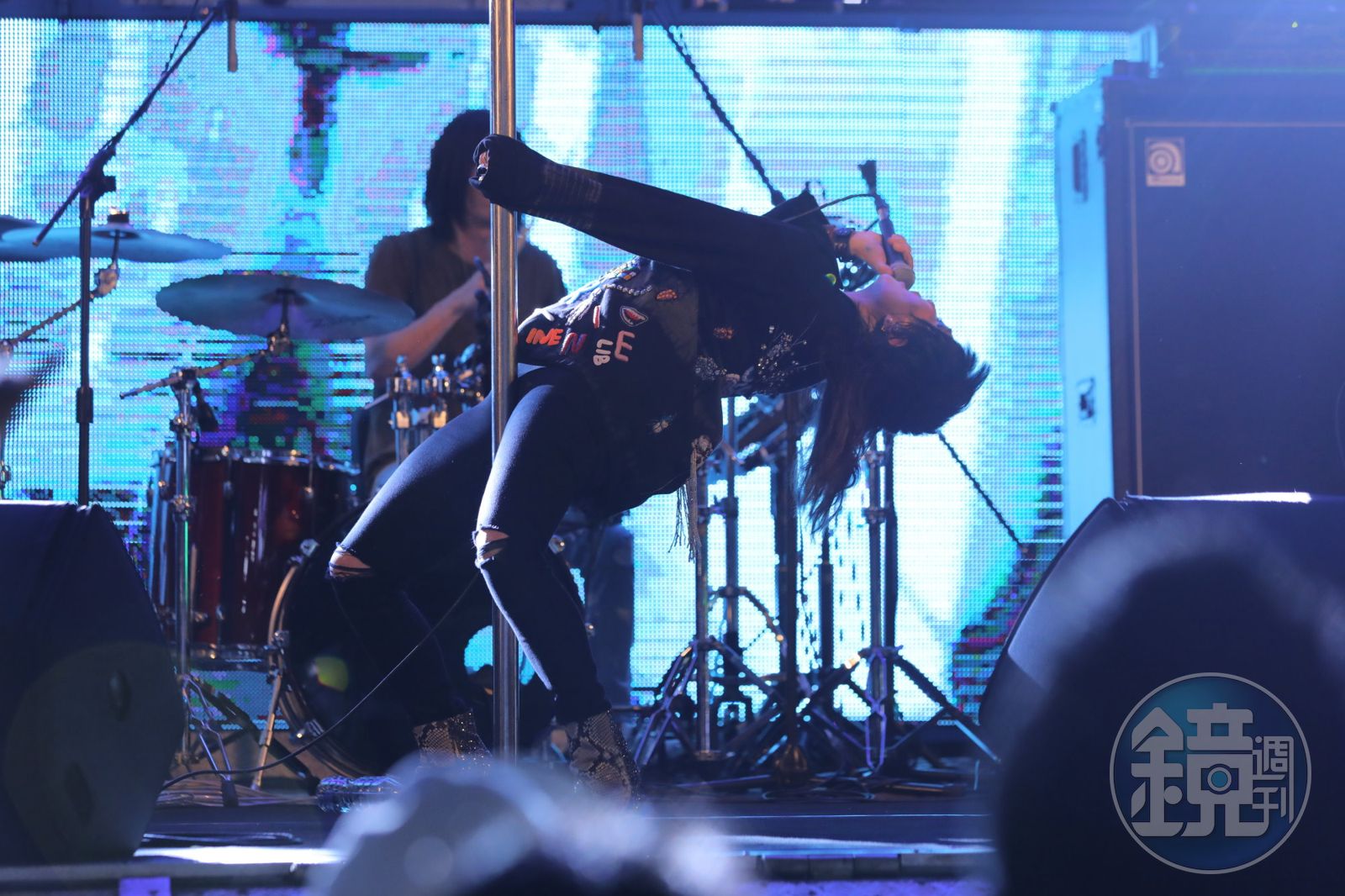 何超儀舉辦巡迴演出,為了台灣歌迷特別在舞台上設置鋼管,興致一來就開始熱舞。(Drill Team 162提供)發布時間:2018.04.23 14:23 臺北時間