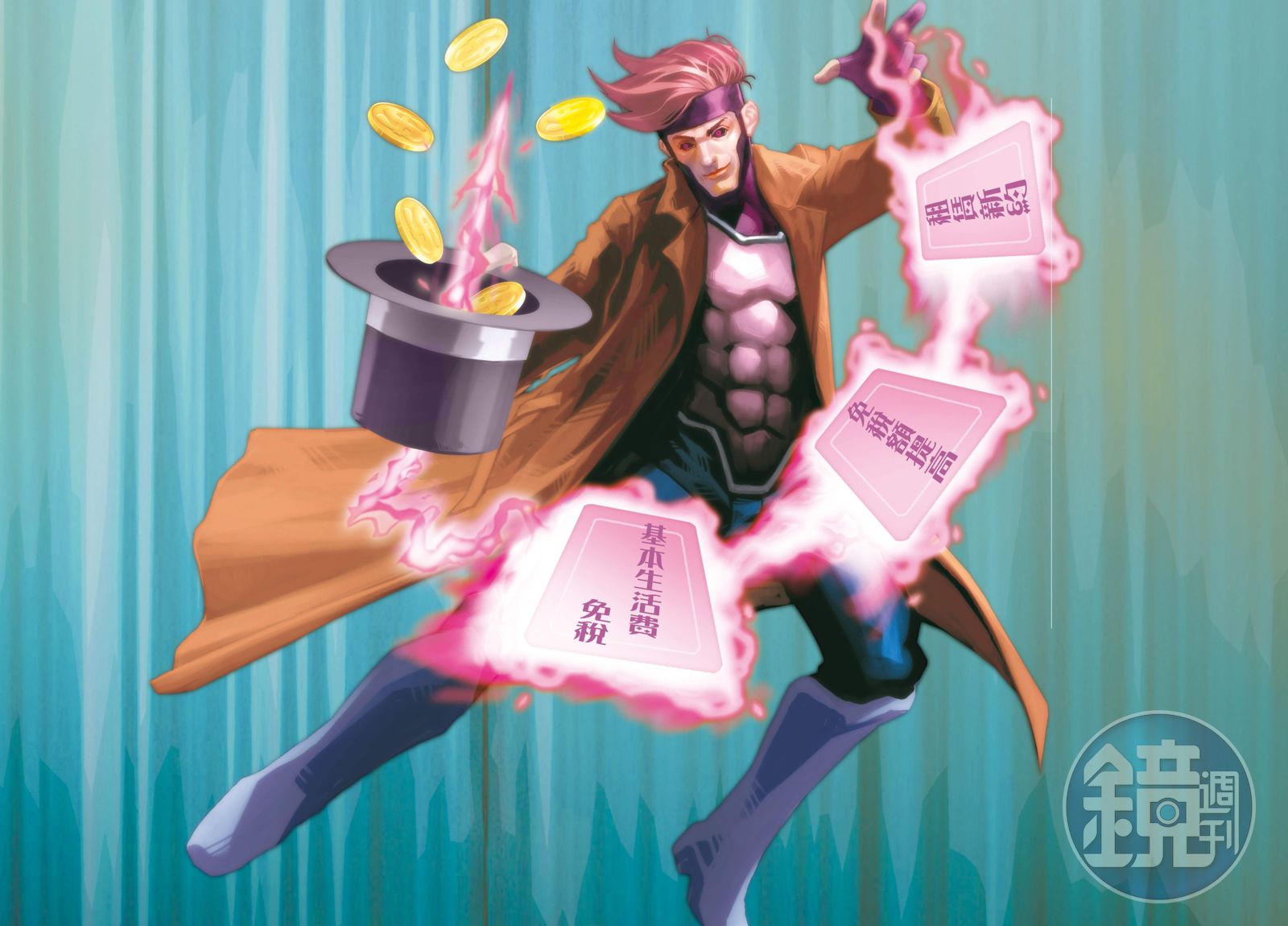 例如單薪的張先生一家五口(均未滿70歲),基本生活費總額為83萬元(16.6萬元乘以5人),若以標準扣除額方式加總免稅額及薪資所得特別扣除額,合計為74.8萬元(標準扣除額夫妻合併申報18萬元、免稅額8.8萬元乘以5人、薪資所得特別扣除額12.8萬元),則二者差額8.2萬元可從綜合所得總額中減除,不用課稅。