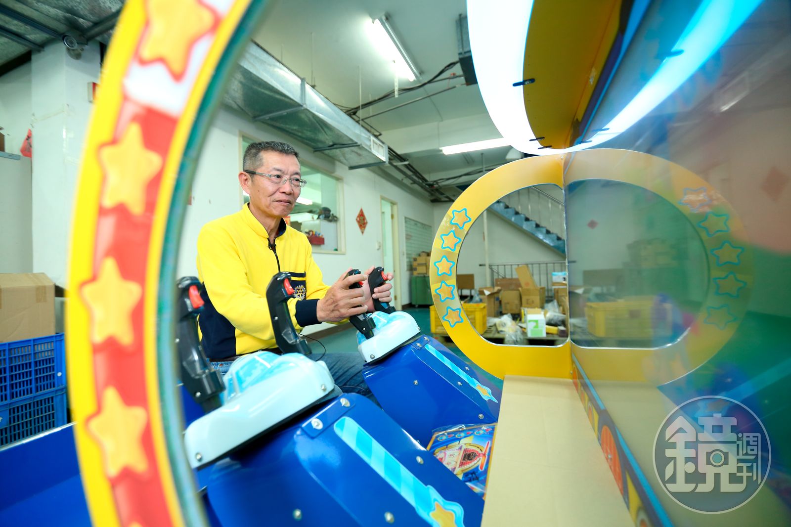 但長期四處寄台卻讓他發現,遊戲的生命週期汰舊換新太快,與其被動迎戰,不如自行研發、進口機台,打造電子遊戲機台一條龍。目前尚芳生產的大型電子遊戲機台超過7成出口歐美、日本,不僅是中國市占最高的投籃機生產商,兩岸年營收破5億元。去年9月他更推出線上投籃電競,主動出擊賦予遊戲新動能,打動年輕人的心。