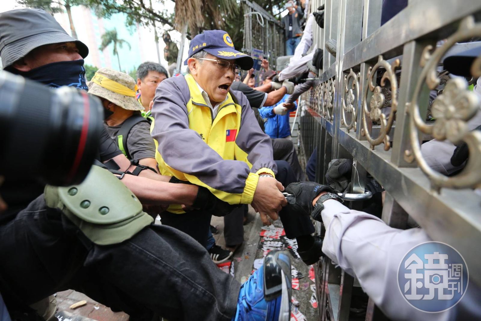 徐國勇指出,今天下午反年改陳情抗議行動出現脫序行為,對採訪的記者施暴,有記者的攝影機與相機被搶走或強制關掉,政院給予嚴厲譴責,此外,陳抗群眾更以煙霧及辣椒噴霧對付警察同仁,這些都已經超出陳情的範圍。