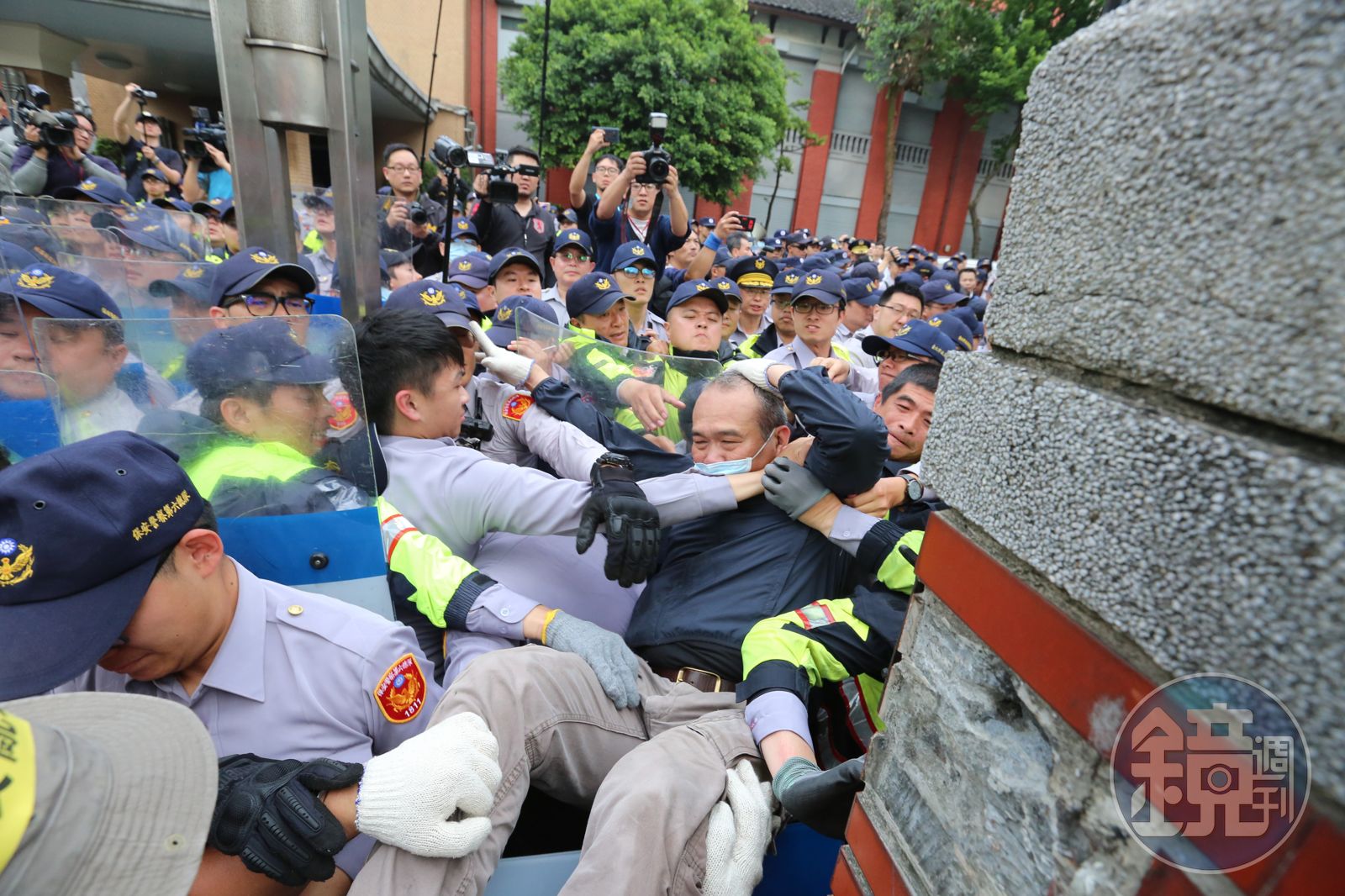 部分退役特戰人員翻過戒備闖入立法院,警方隨即出動1,200名以上警力,一個一個強制驅離,目前已有18人遭逮捕,陳抗團體更揚言:「武力抗爭到底」,並發生丟擲煙霧彈、棺材、塑膠椅、保溫瓶、剪刀等物品的推擠事件,甚至有記者被搶相機、毆打的脫序情形。