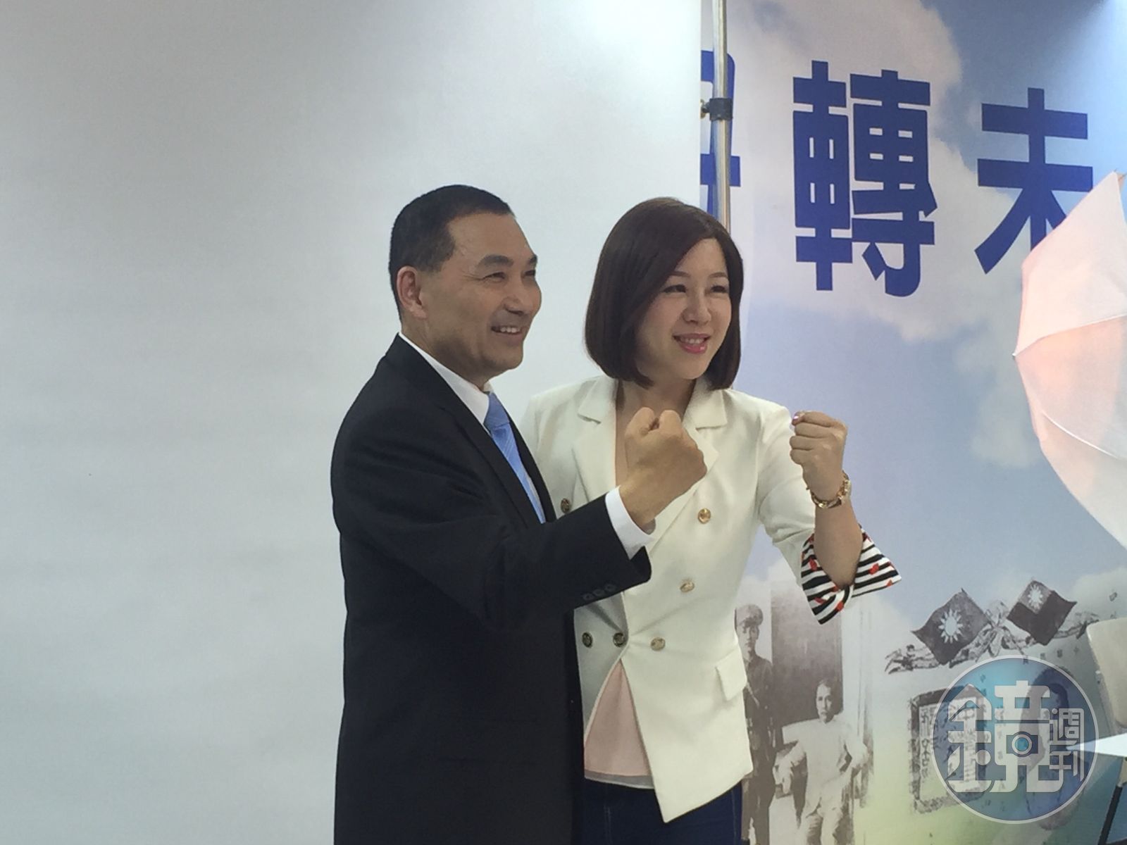 新北市議員劉美芳換上招牌「戰服」與侯友宜合照。發布時間:2018.04.27 17:52 臺北時間