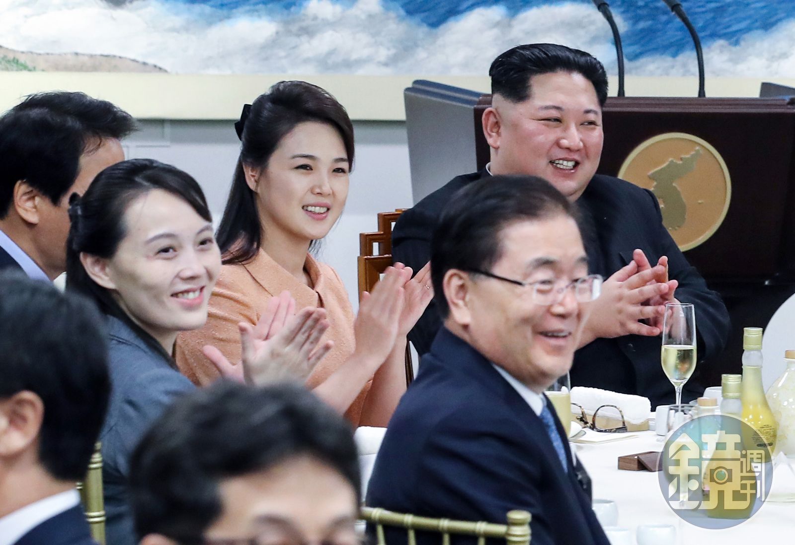 至於金正恩的胞妹金與正更幾乎全程形影相隨。南韓儀仗隊迎國賓入境時她在隊伍外頭亦步亦趨;金正恩和文在寅的植樹典禮她在旁邊遞手套水壺;簽署板門店宣言她則一旁拿筆。在這場外交大戲裡,她彷彿是不斷在鏡頭前穿進穿出的劇務,要讓人不注意也難。
