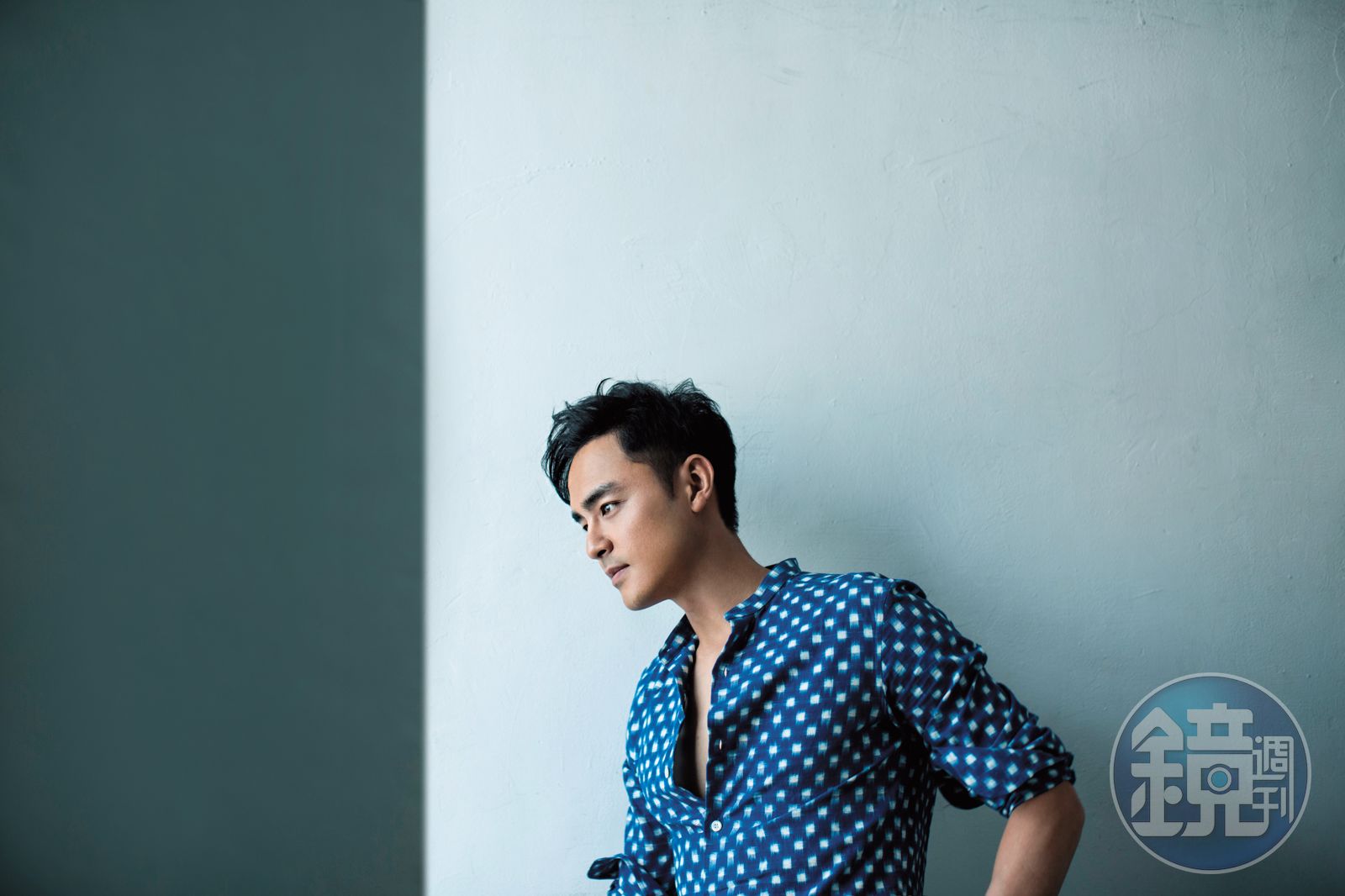 早上10點剛過,明道走進攝影棚,身體因動作片練得精實,心情卻是鬆溜溜的,換上拍照服裝,他想打著赤腳上場,也不想被鞋子給拘束,坐下,椅子如泥,他身子更慵懶沉下一格。