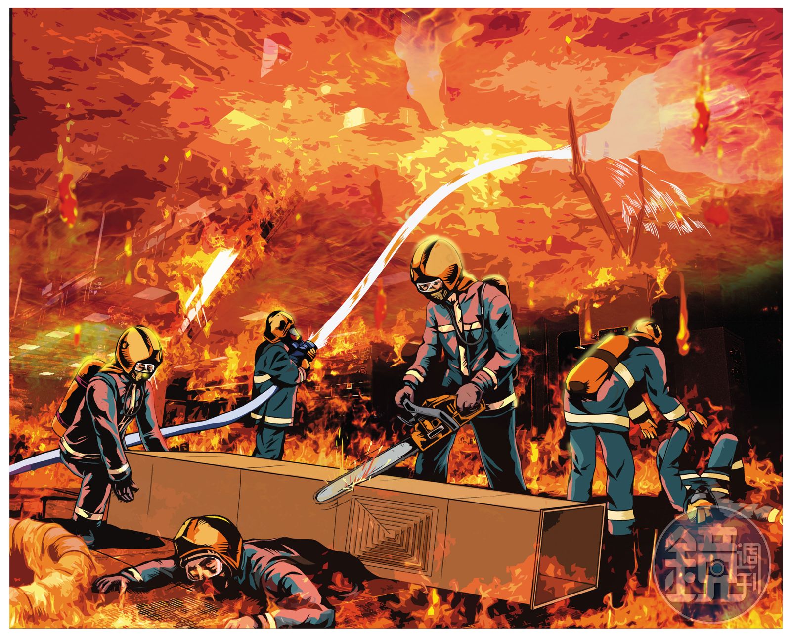 據了解,帶隊小隊長游曜陽二度回答收到撤退指令,但十多分鐘都沒有看到7名兄弟撤出的身影,隨著時間一分一秒過去,現場人員的心也越來越沉,他們發現同袍受困後,立即射水線讓工廠降溫,並派遣人員進去尋找。