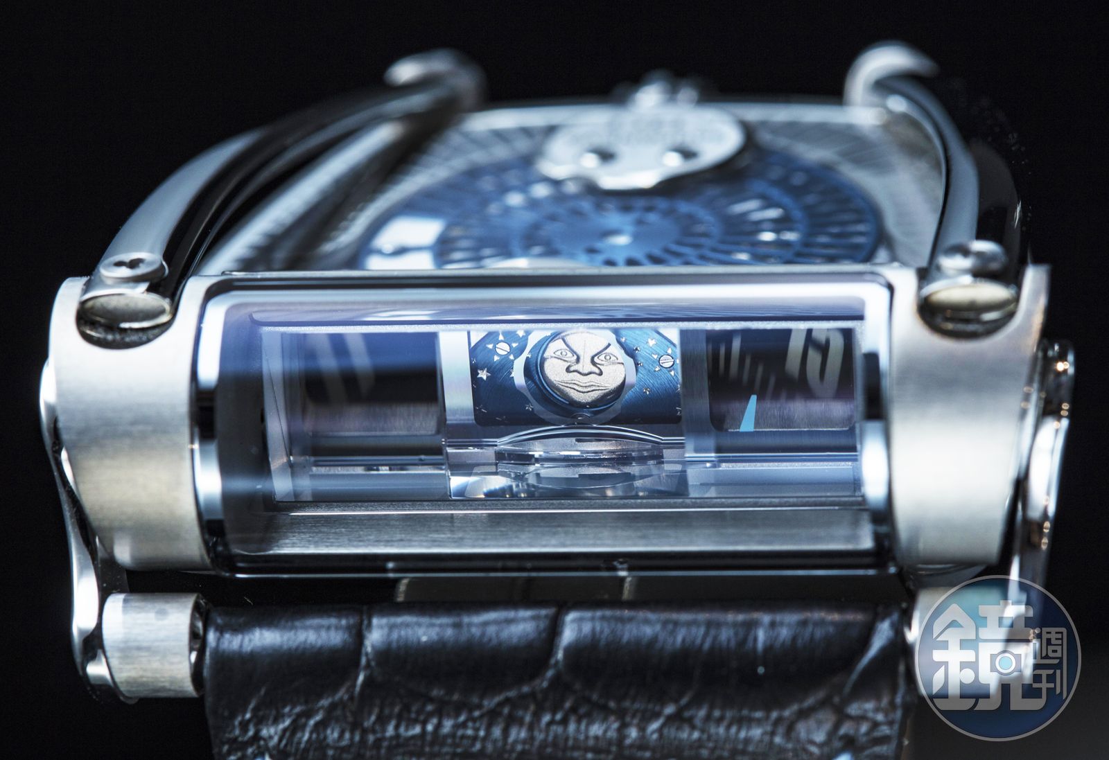 MB & F於SIHH的展館。獨立製錶品牌MB & F認為自己是機械藝術家而不是製錶品牌,鐘錶工藝只是它們詮釋機械藝術的多種方式之一。而在今年品牌再度跟芬蘭獨立製錶師 Stephen Sarpaneva合作了,打造了名為「MoonMachine 2」的月相顯示腕錶,挑戰愛錶人對於月相腕錶的傳統看法。此款腕錶以HM8的跑車形錶殼為基礎,但重新設計了自動盤與顯時機構,以容納月相顯示功能。