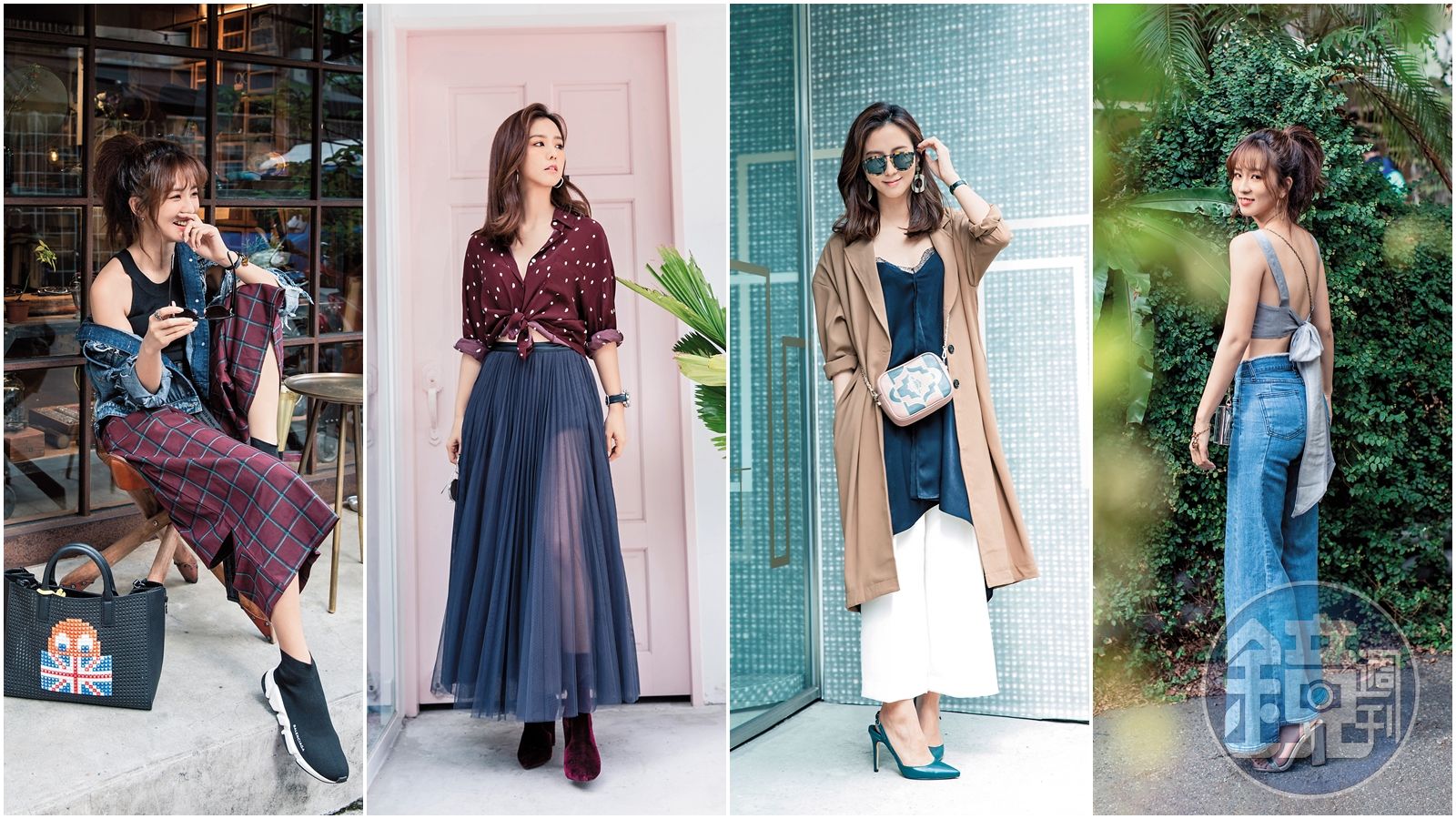 MEIER.Q咖啡色長罩衫,約NT$800;ZARA黑色蕾絲洋裝,NT$1,290;WONDERMENT白色長褲,約NT$3,000;網購的高跟鞋,約NT$1,200;Karen Walker玳瑁框墨鏡,約NT$12,000;OR YANY鍊帶包,約NT$8,000。 我很喜歡街頭風,可能骨子裡有著叛逆因子吧?我的個性比較男孩子氣,動作經常大剌剌,沒有在管形象的,所以我很愛穿褲子,尤其是寬褲,這樣可以展現隨興但是不隨便的風格,尤其逛街時這樣穿,超級舒服。