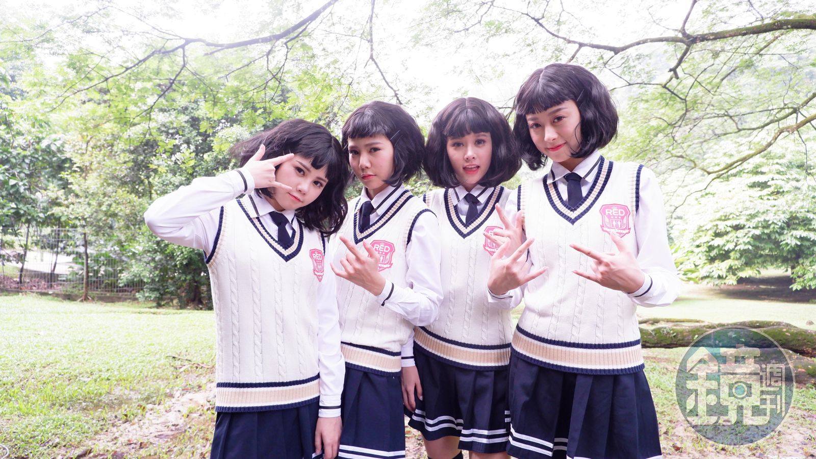 AMOi-AMOi不只穿校服,還被導演安排戴著一頂超怪假髮,4個人就瞬間醜百倍,AMOi-AMOi說:「我們都一直在笑說,怎麼會有渣男喜歡上同樣醜怪的我們,故事情節太唬爛。」