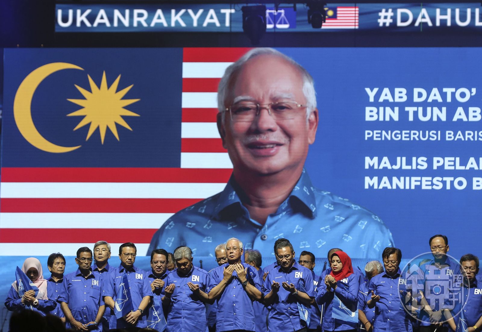 馬來西亞總理納吉,出席在吉隆坡的執政聯盟「國民陣線」競選宣布儀式。(東方IC)發布時間:2018.05.08 07:46 臺北時間
