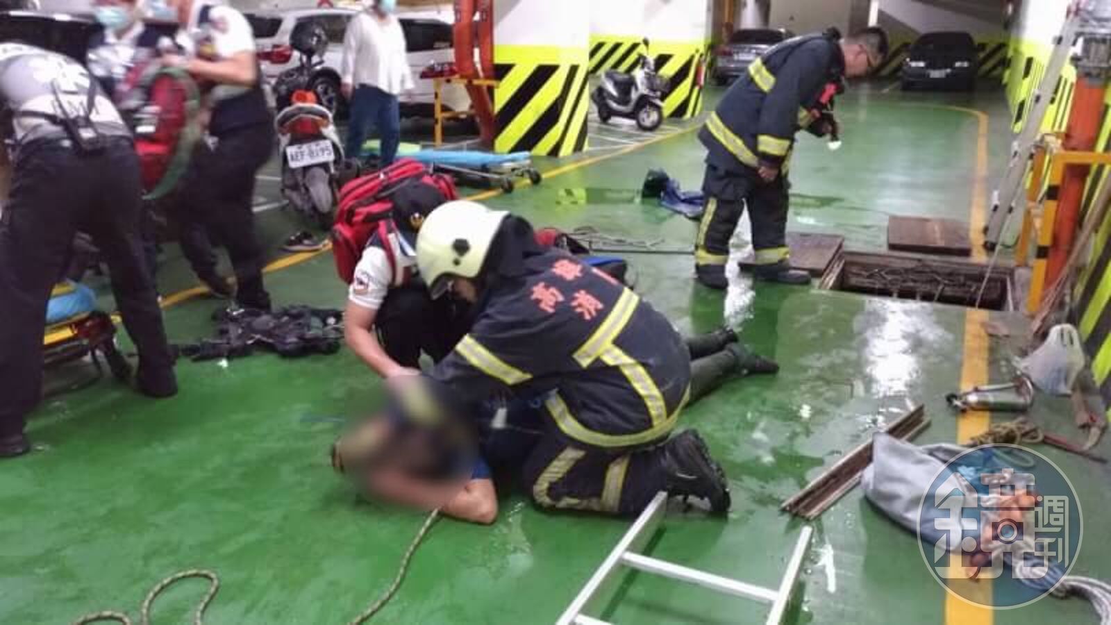 警消調查,現場係一家機電公司的3名工人於大樓地下二層維修汙水管時,不慎受困於汙水處理槽內,現場水深約1公尺,消防局搶救人員於17時15分將第1名高姓負責人(64年次)救出,17時20分將第2名林姓男子(77年次)救出,17時22分將第3名高姓男子(53年次)救出,分別由救護車送醫院急救。