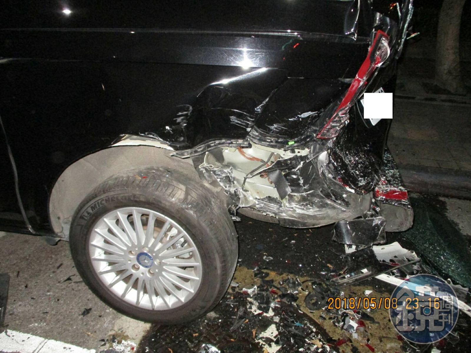 停在停車格的車輛無辜受到波及,車尾幾乎遭撞爛。(松山分局提供)更新時間|2023.09.12 20:26 臺北時間