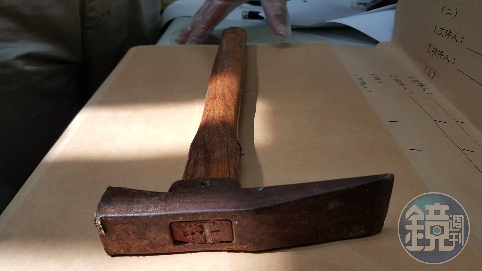 郭嫌行凶後將凶器鐵槌丟棄在附近的果園中,警方下午前往搜索,也確實找到了那把沾血的鐵槌,讓這起命案事證明確。郭嫌隨後也被押往地檢署進行複訊。
