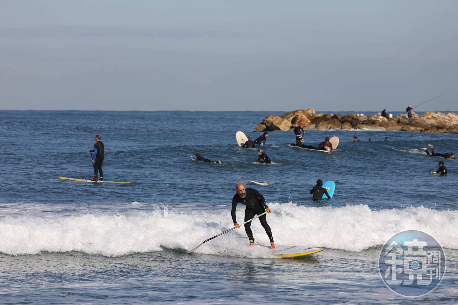據說特拉維夫每年擁有318個晴天,不知是天氣太好還是全民皆兵的緣故,特拉維夫的市民非常熱中於運動鍛鍊,沿著濱海碼頭跑步、騎車的人,多不勝數,海面上衝浪的人更是黑壓壓一大片,每個人臉上都是輕鬆表情。我眼中的特拉維夫,不是國際新聞中硝煙處處的以色列,而是享樂主義至上的地中海城市。