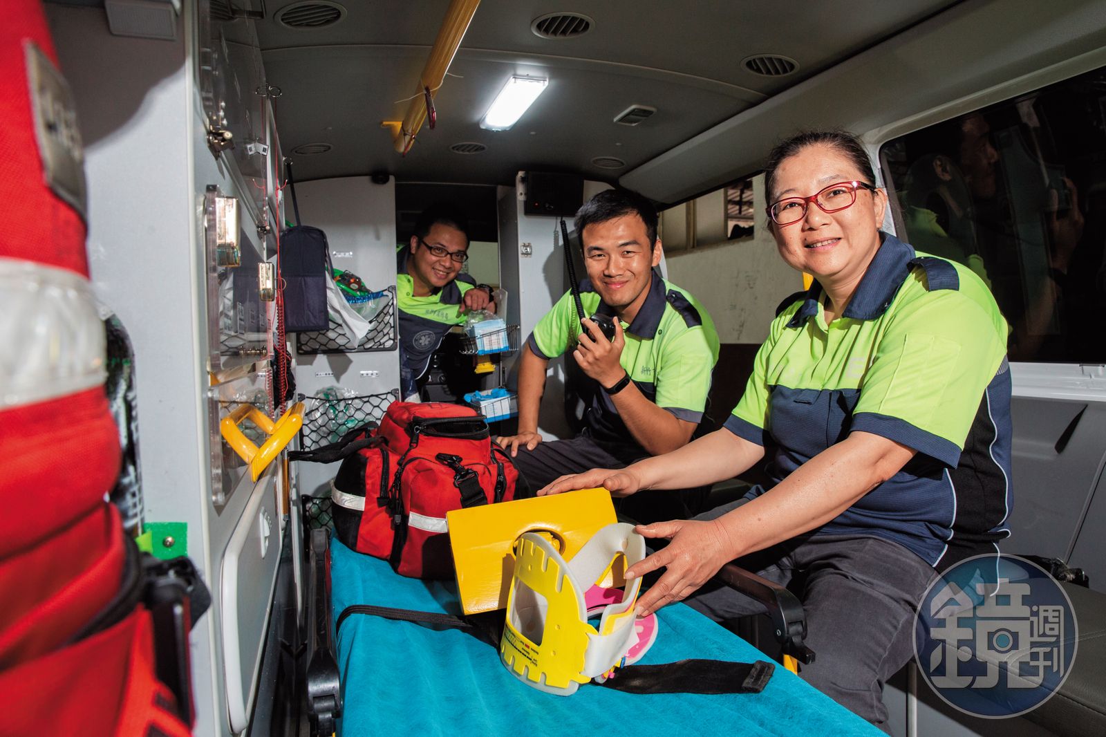 「我每天都是跑完救護再來擺攤,剛開始,很多人都在看笑話,覺得我幹嘛搞些有的沒的,但我和爸爸一樣,覺得能為別人盡點力的成就感,不是生意多好可以取代。」有些東西用錢也買不到,是陳美枝出勤務時的真實感受。