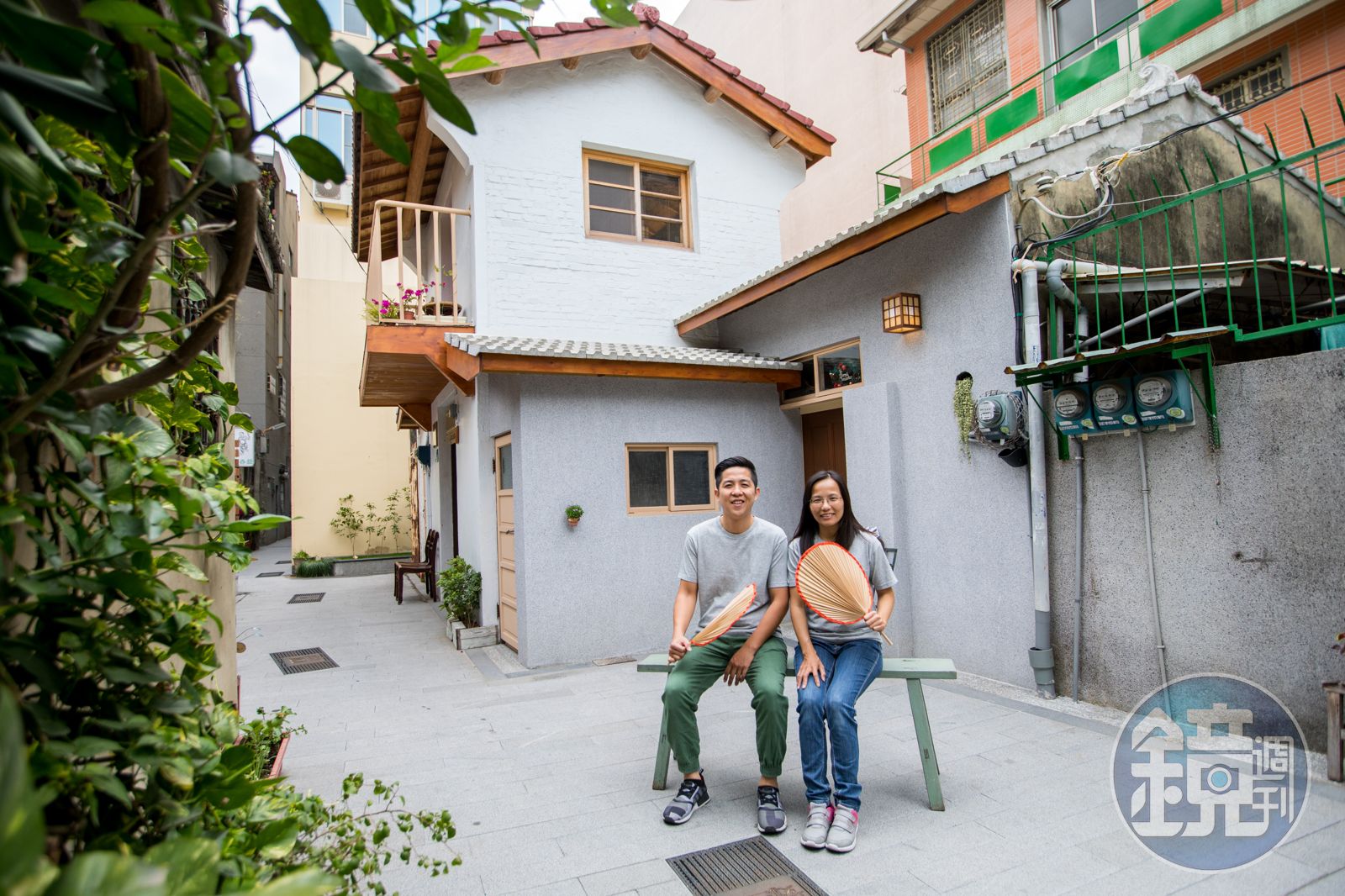 斜對門是一幢白色的小房子,醒目佇立街角,有如清秀佳人般脫俗。「那種感覺很特別,好像眼裡就只有它。」秀玲和鎧舟回想初遇的悸動,這對7年級夫妻把老房子改造為民宿「永福97.1」,分享街坊人情味。