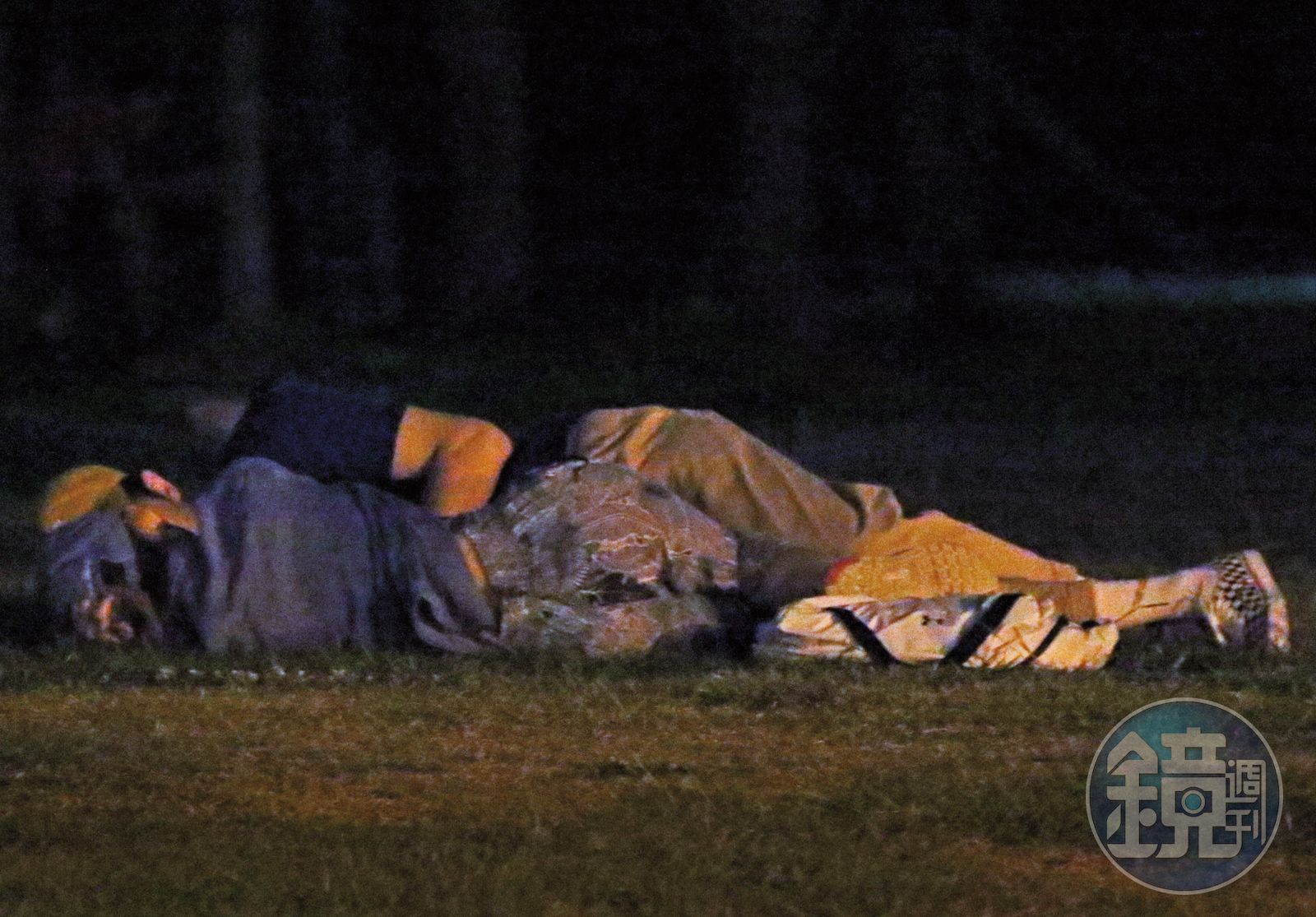 大約過1個小時,2人的慾火稍稍消退,才敢起身離開,不過才一起身,張軒睿又抓緊了機會親吻女生的肩膀,貪歡的舉動看得出他對林明禎的精蟲衝腦,接著,2人互相拍彼此的衣服,避免雜草上身。