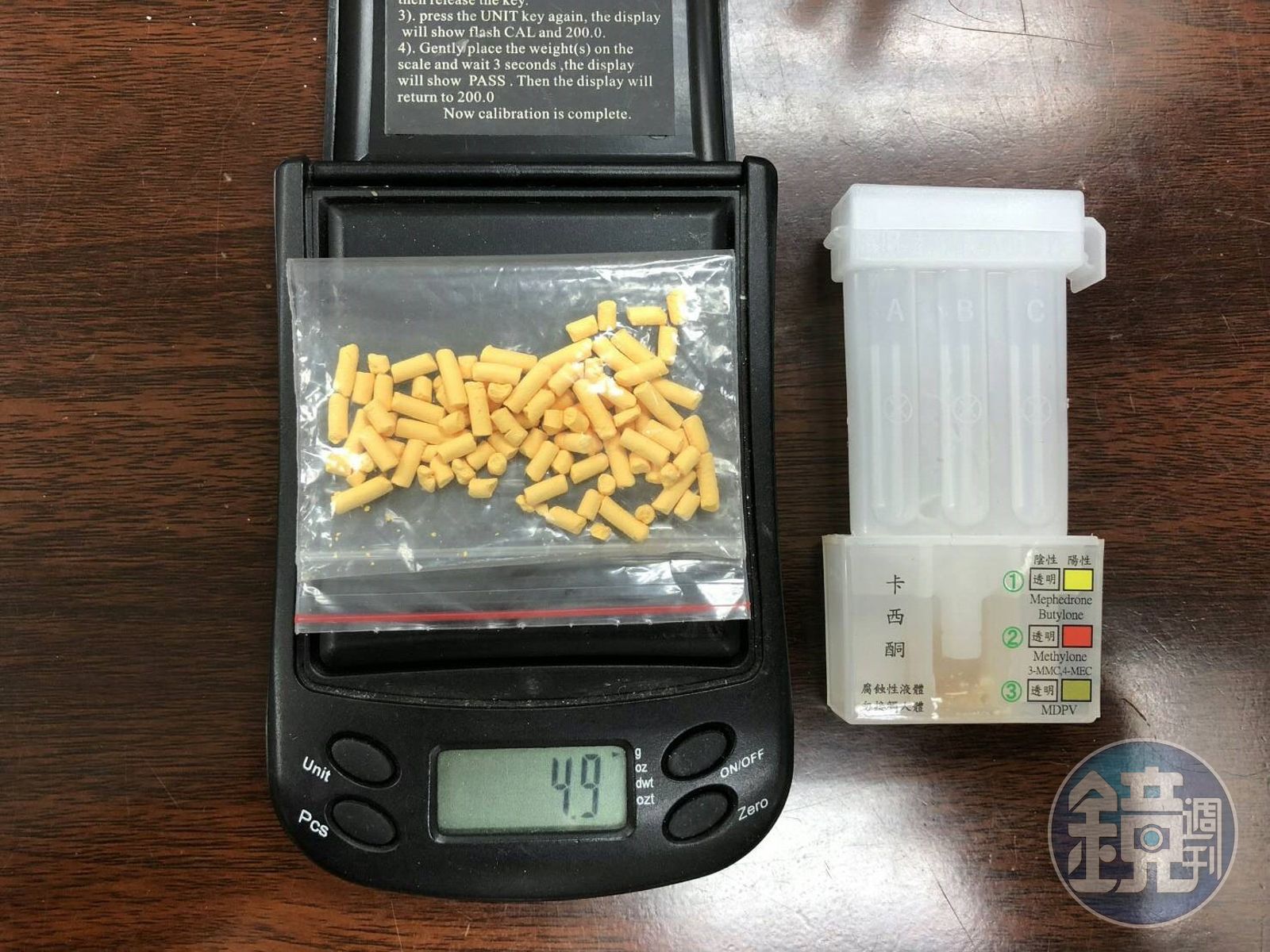 警方查獲二級毒品卡西酮,服用後會產生幻覺。(松山分局提供)發布時間:2018.05.23 15:21 臺北時間