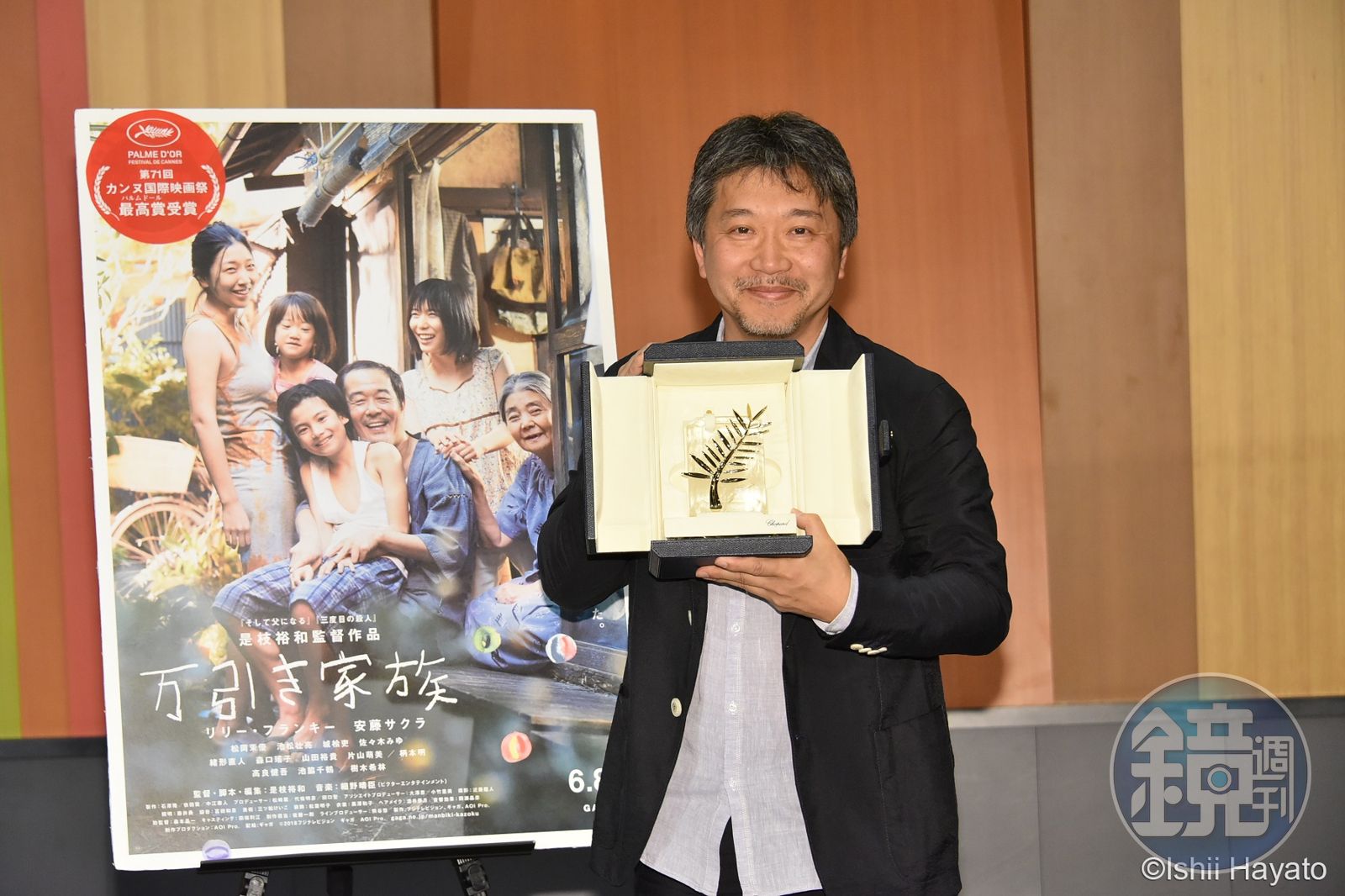 這場深夜記者會,依舊吸引150名日本媒體參加。是枝導演一開始就大秀金棕櫚獎座,他表示:「回國後看到工作人員們的笑臉,我終於有了獲獎的實感。頒獎典禮當天,我從授獎直到晚餐,都持續拿著金棕櫚獎座,當天造成的肌肉痠痛,一直到昨天才痊癒。」