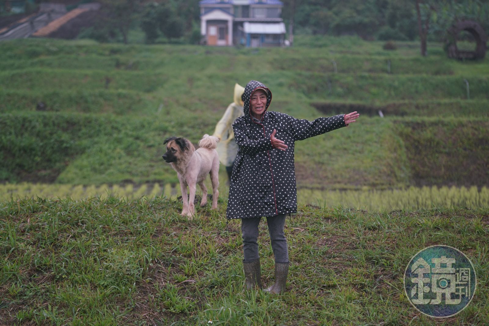 阿美族人舒米如妮是港口部落海稻田復耕的重要推動者,我們來訪的這一天,她在雨中補秧苗,和林務局官員場勘討論要整修部落水圳,想為更多乾涸土地引水找生機,她的「哇助」(阿美族語的狗)無論晴雨都跟著她跑進到田裡,她在水田間插秧,哇助在田梗上打滾,她返鄉的故事被改編成電影《太陽的孩子》。