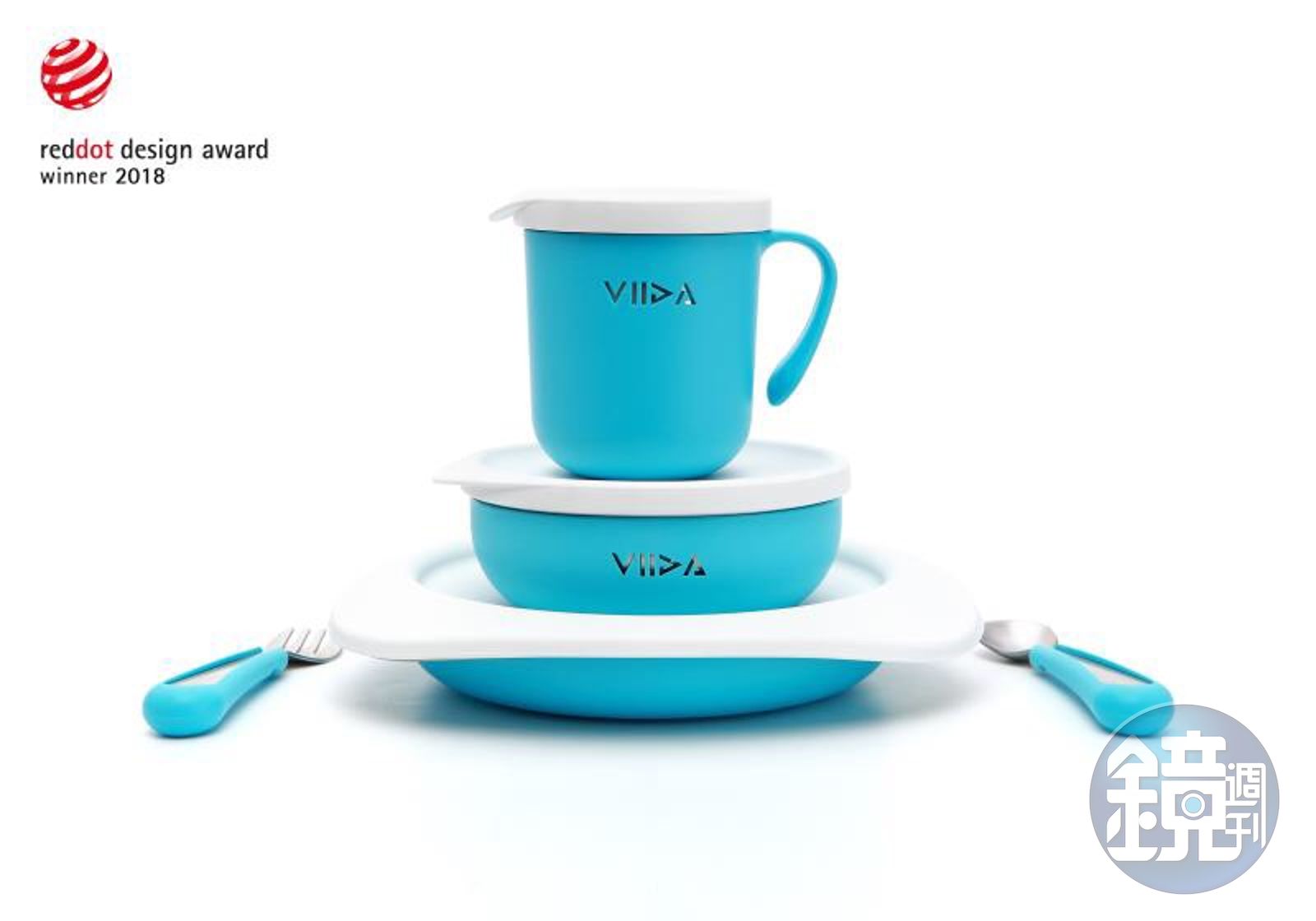 負角度防漏盤緣、可拆式叉匙握柄,這是錦明實業自有品牌VIIDA的Soufflé系列抗菌不鏽鋼兒童餐具,不僅能減輕媽媽清洗餐具的辛勞、預防所有死角,對寶貝也有隔熱、易抓握的功能,上市半年多,就榮獲2018年德國紅點設計大獎。