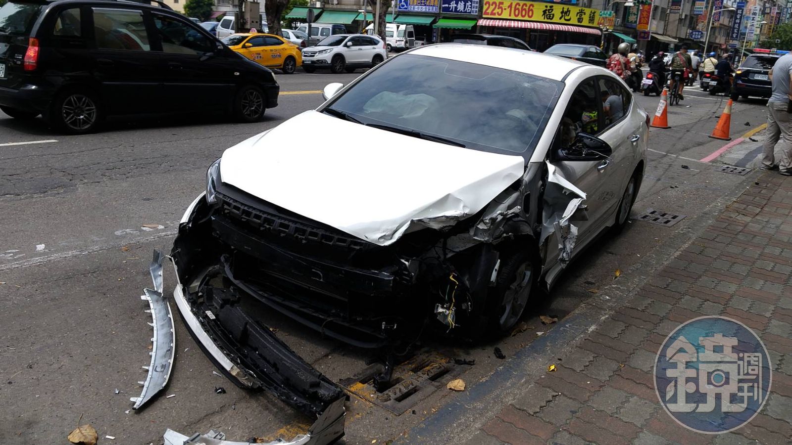白色轎車無預警逆向撞車,造成5車5人受傷。(警方提供)發布時間:2018.06.01 17:23 臺北時間