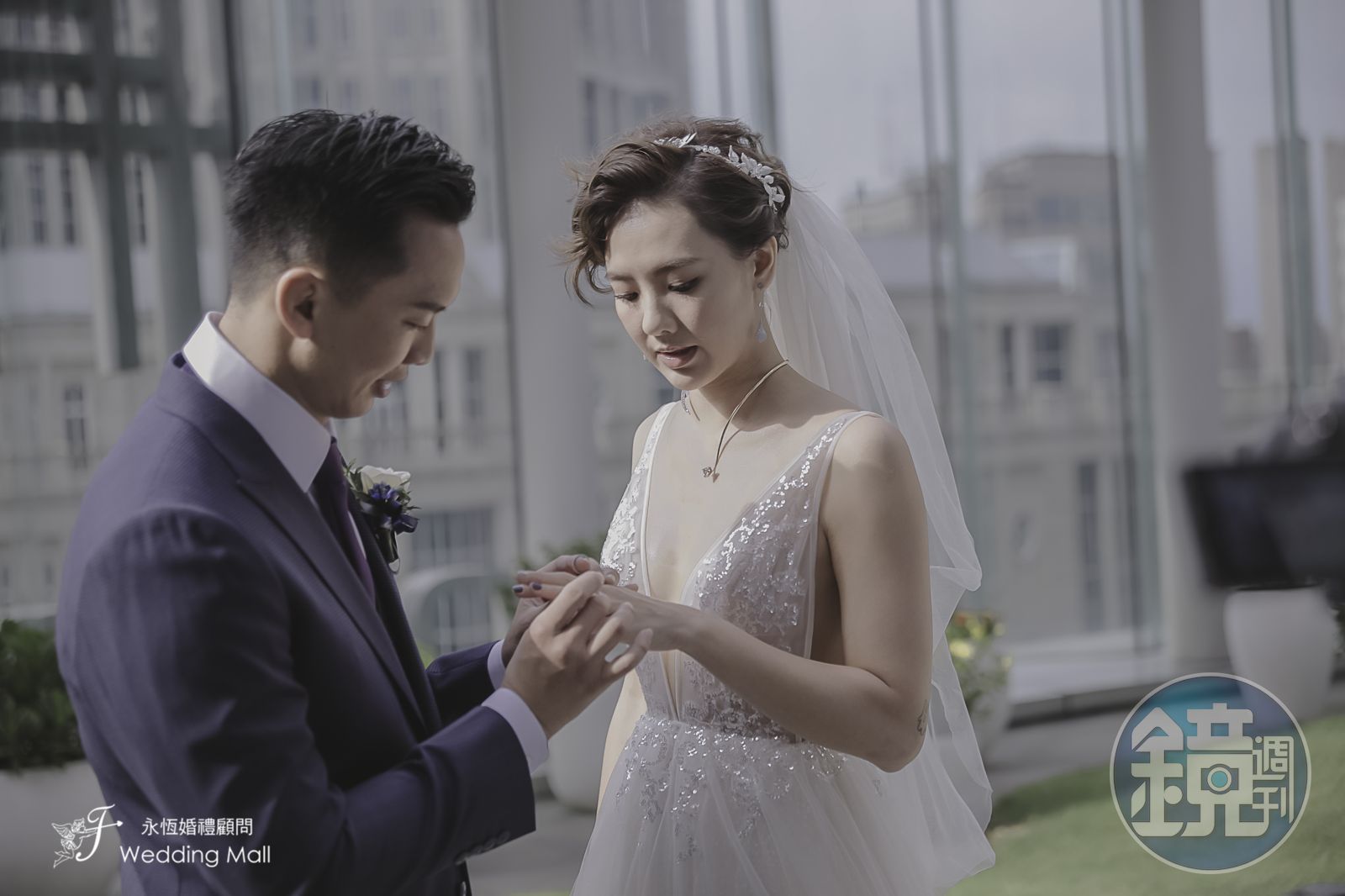 老公黃育仁替劉雨柔套上婚戒。(米兔哥娛樂)發布時間:2018.06.02 18:42 臺北時間