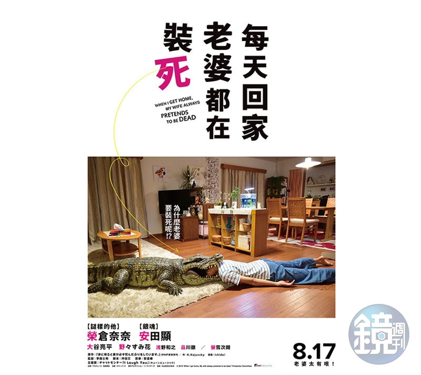在推特與 Niconico 爆紅的《回到家時老婆一定會裝死》(家に帰ると妻が必ず死んだふりをしています。),去年 5 月宣布翻拍成真人電影,電影在日本的 6 月 8 日首映,雖然無法同步,但台灣也確定可以在 8 月 17 日看到這部許多年前風靡網路的爆笑夫妻故事。