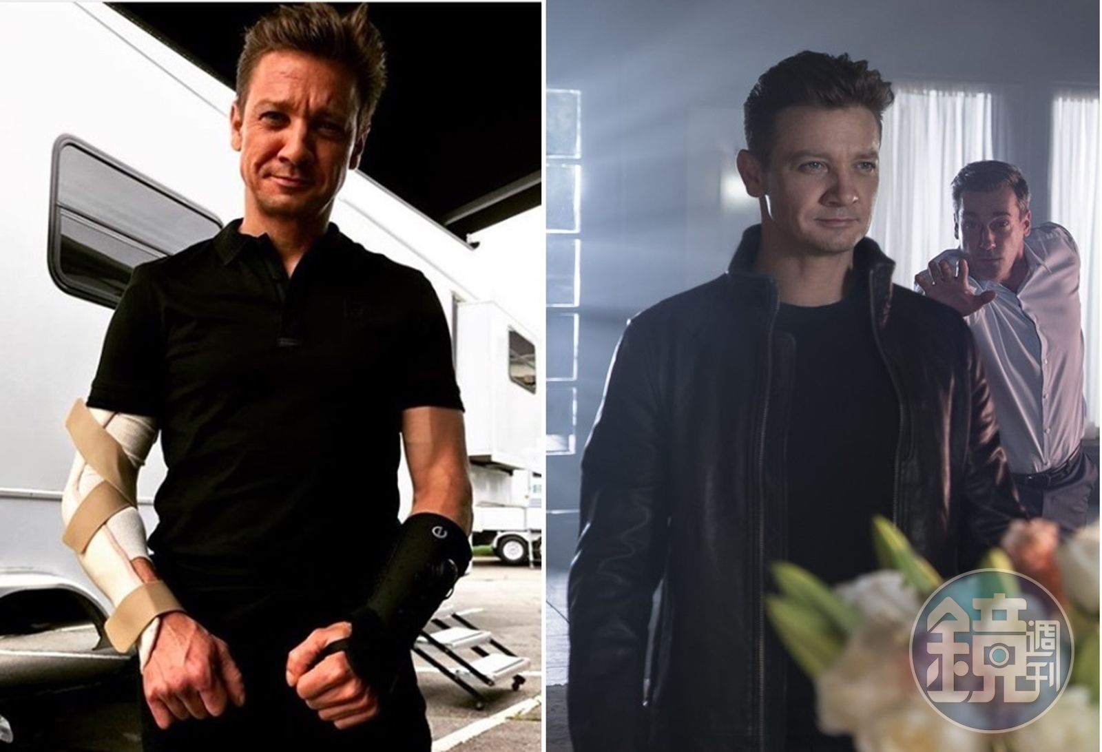 傑瑞米雷納說當時兩手都得固定、不能亂動,所以他的動作很像機器人,「我的手只能移動某些角度。」問題是,預告片裡頭他看起來身手矯健,一點也不像打石膏的人。而且傑瑞米口風很緊,去年他兩手打石膏上電視,卻不肯透露是在拍哪部片受傷的,大家還以為是《復仇者聯盟:無限之戰》,沒想到是《貼背戰》。