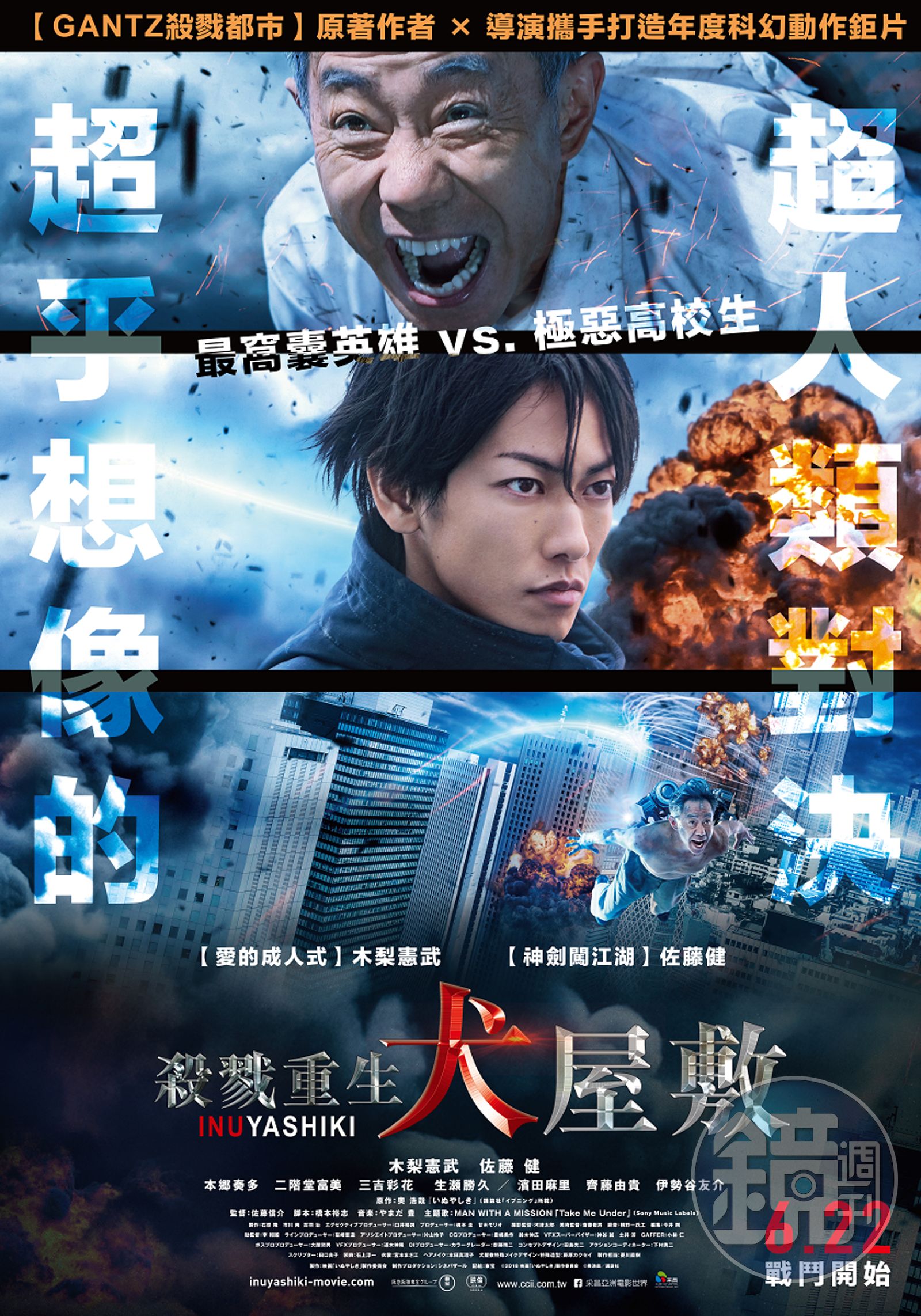 《殺戮重生犬屋敷》改編自奧浩哉的同名漫畫,故事描寫一名無論在公司或家庭存在感都極度低落的平凡上班族犬屋敷壹郎(木梨憲武飾演),平常能夠對話的對象只有愛犬「花子」,某天大叔得知自己罹患癌症末期,來日不多,難過的他帶著愛犬到公園痛哭,卻與同樣來到公園的高中生獅子神皓(佐藤健飾演)一起被失控的外星飛船砸爛肉身。為了不影響地球秩序,外星生物決定讓 2 人重生──維持人類外表、用機械打造全新的身體,讓他們成為擁有卓越戰鬥能力的「超強人類」。