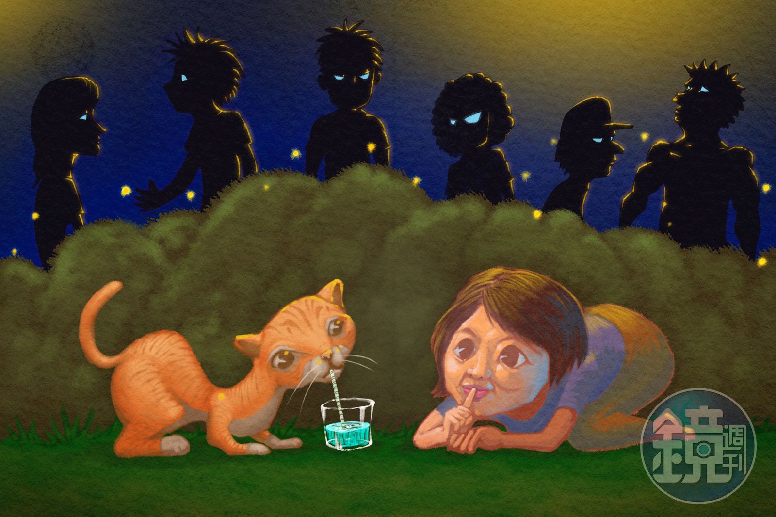 我們像是失聯的地下黨員同志,急急交換著不會有人知道並解讀的情資密碼,這我也才知她們的上線張小姐是鋼琴老師,專教課後的金華國中學生,她負責賺錢提供貓糧、醫療、絕育的所有費用,原住民女孩負責每天定時定點餵食和觀察紀錄。