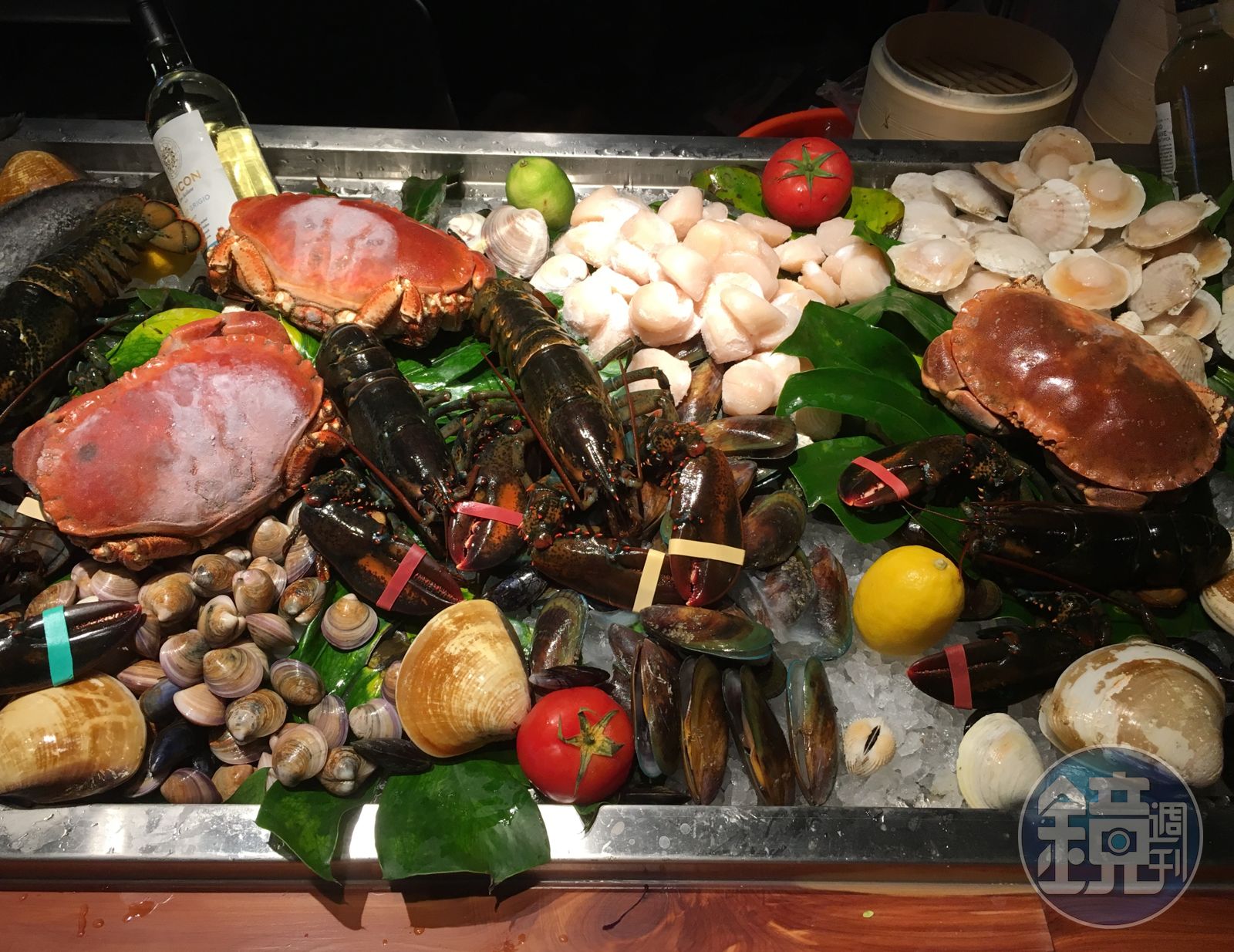首波主打華麗海鮮塔,上層是有牛奶香的廣島生蠔和肥美的美國生蠔,下層有波士頓龍蝦壓陣,肉質彈Q鮮甜,麵包蟹的蟹膏金黃飽滿,另外還有生食等級的牡丹蝦、無毒白蝦和大顆文蛤等海味,痛風指數破錶。