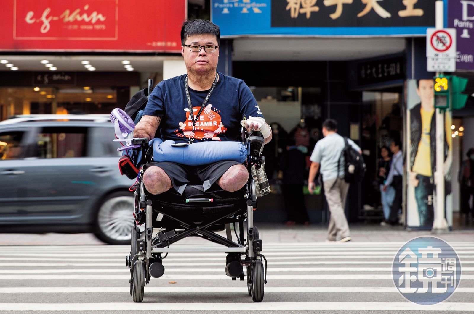 所以才變成一個樂觀到彷彿戴著微笑面具做為保護色的人嗎?我們問:「上次哭是什時候?」他答:「出院後就沒再哭了。」生活如此不便,還會有真心感到快樂的時候嗎?他說:「哪怕只是喝個飲料吃個雞排,這些平凡的事情,可是我一想到原本是活不下來的,就覺得這些東西都是現在很珍惜的。」心理陰影面積趨近於零。